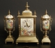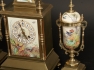 Mässing och porslin med målad dekor av landskap, höjd 30 - 37 cm, ej funktionstestad, fint skick.