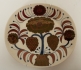 Numrerad 1412/2000. 26x23 cm. Något krackelerad i glasyren, kulor saknas (en kvar).