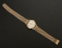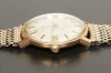 Länk i gulddouble, automat, stavindex, datum, diam. 33 mm, går vid enklare test, defekt glas