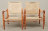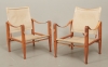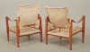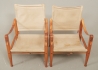 Ett par, Rud Rasmussen, Danmark, klädsel i canvas, stomme i ek, sitthöjd ca 32 cm, bruksslitage, skador i klädsel, fläckar. Saknar sittdynor.