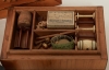 2 st skrin, strumpstickor, nålfodral mm, silver förekommer.