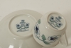 9 koppar med fat, smärre bruksslitage, men ett fat med nagg.