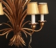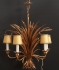 Guldfärgad metall, 5 st ljuspunkter, höjd exkl. kedja 65 cm, smärre slitage, damm, saknar elkontakt