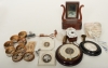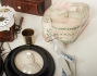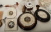 Bl.a. Schwartzwaldsur, miniatyrmålning, barometer, miniatyrrelief, rakspegel, mynt, ryska sedlar, högsta höjd 22 cm.