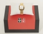 I gulddouble, safirglas, 30x25 mm., bra skick, i originalbox. går ej (Batteri?).