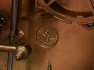 Omkring sekelskifte 18/1900-tal, stomme i sten, samt marmor, lös dekorelement i gjutmetall, totalhöjd 48 cm, ej funktiontestad