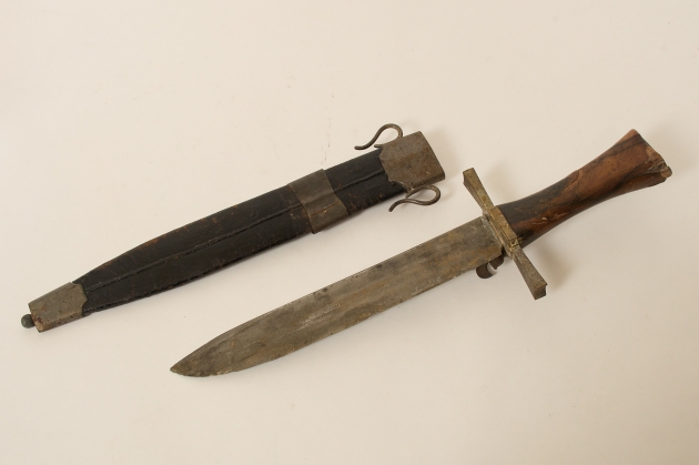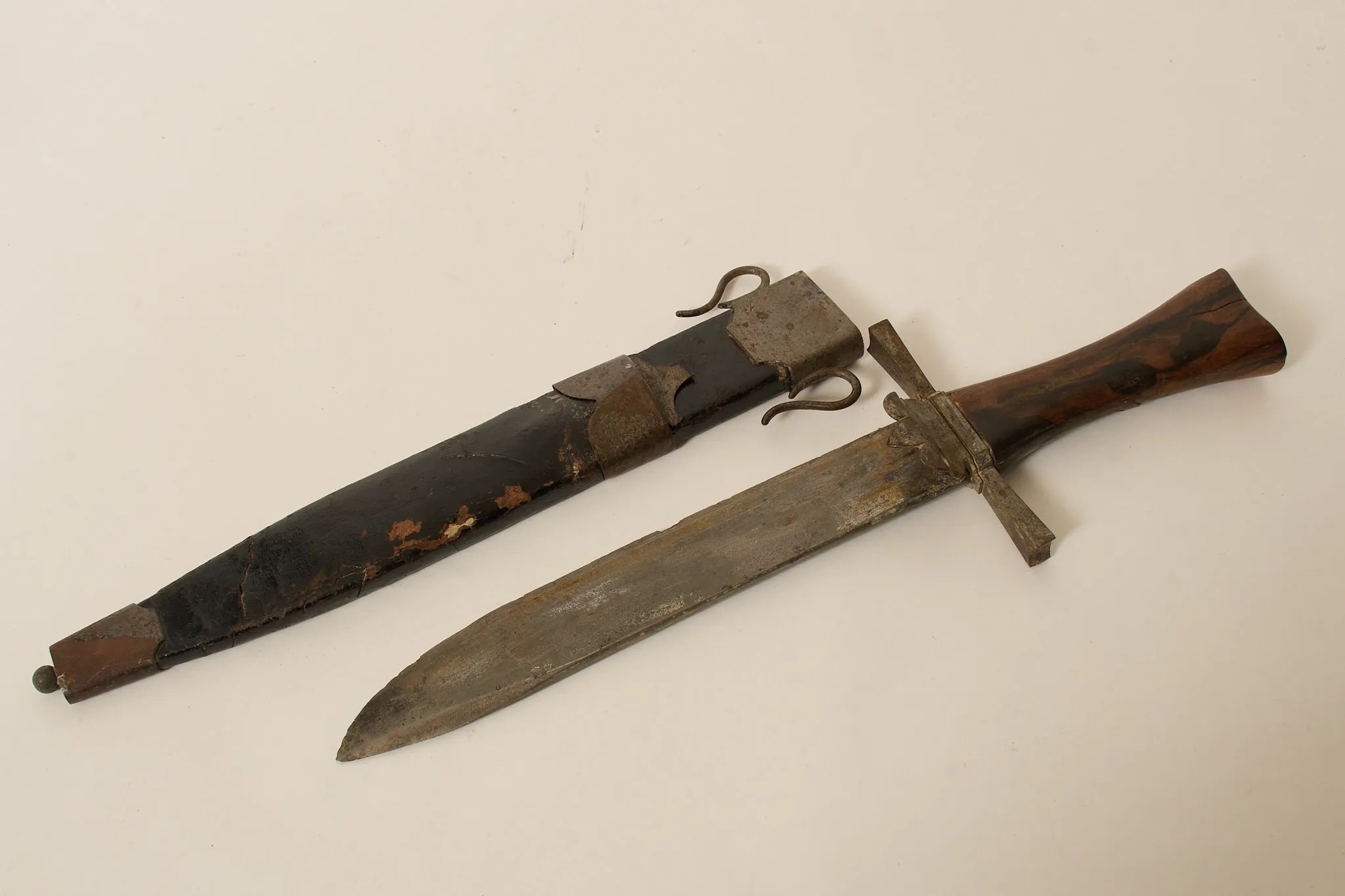 Metall, trä, samt läder, dödskalle på handtag. Slitage, skador, tot.längd 47 cm.