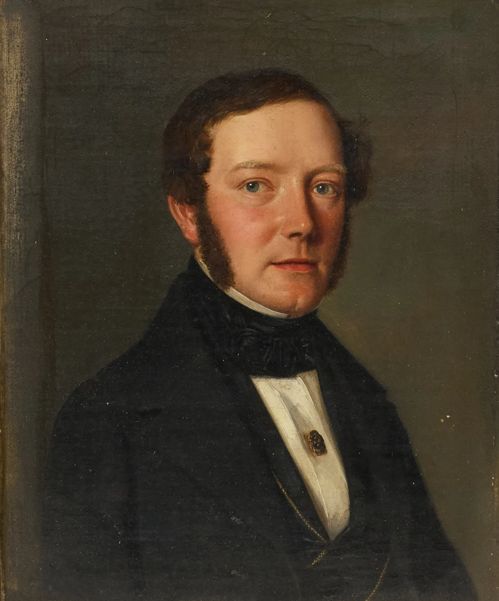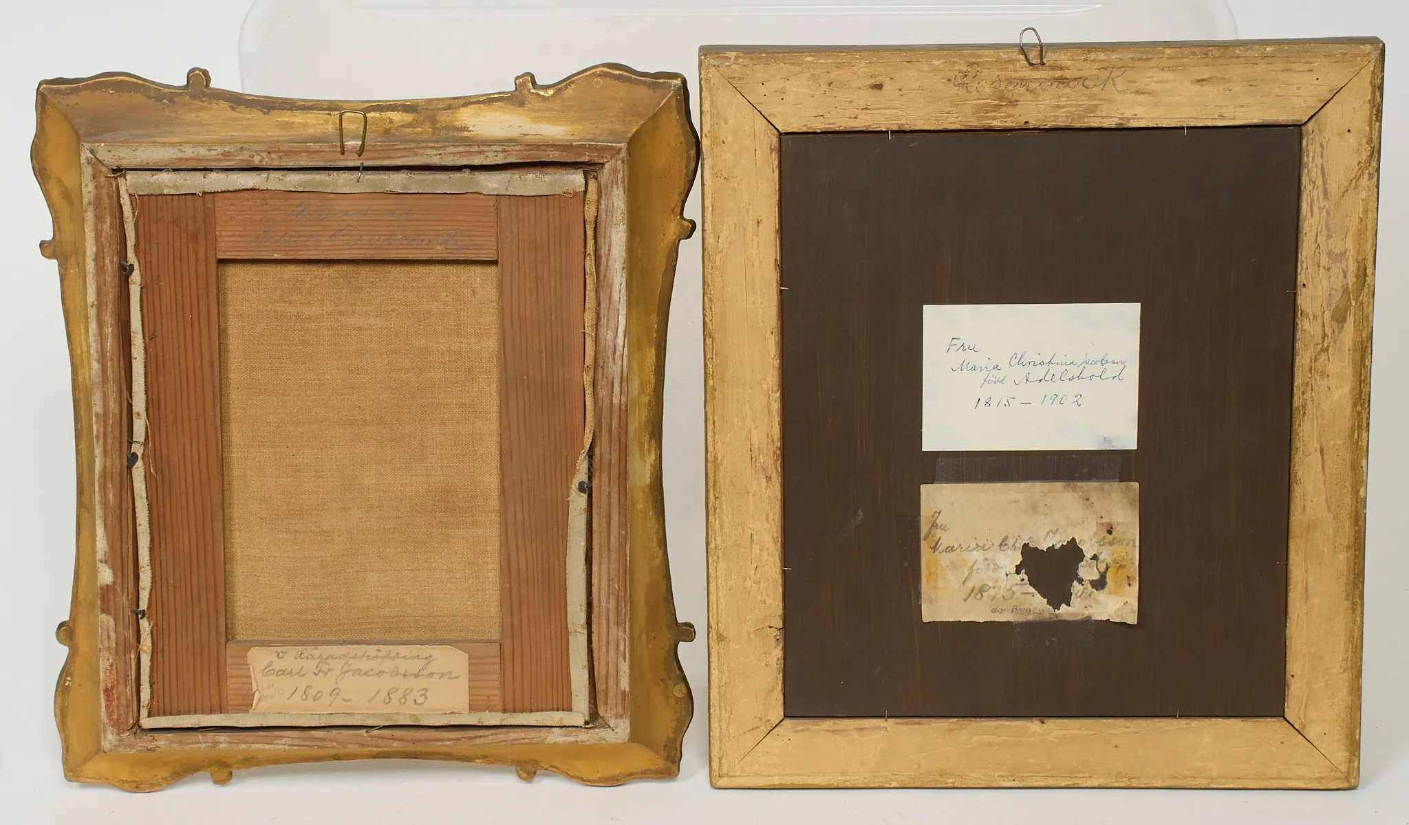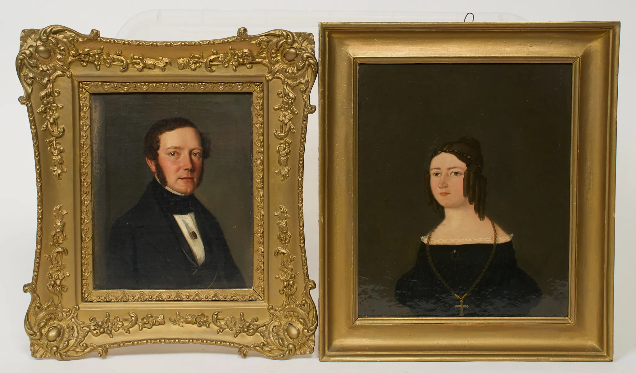 2 st, ett mansporträtt olja på duk, samt ett kvinnoporträtt, olja på pannå, fernissad duk. största rammått 38 x 33 cm.