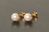 Ett par, guld med odlade pärlor, diam. pärla 7 mm, tot. vikt 3 gram, fint skick