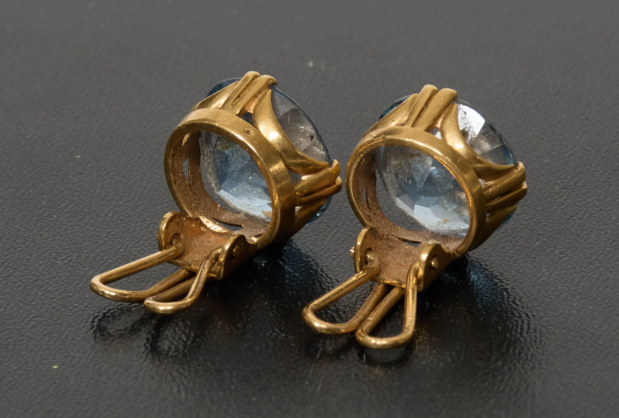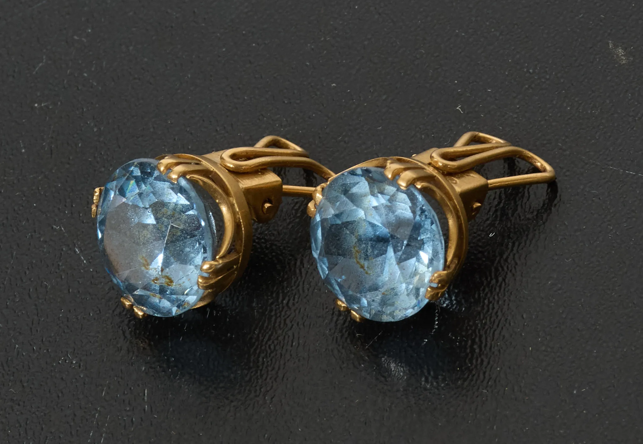 Ett par, med blåa stenar, diam 13 mm, tot.vikt 8,5 gram, smärre bruksslitage.