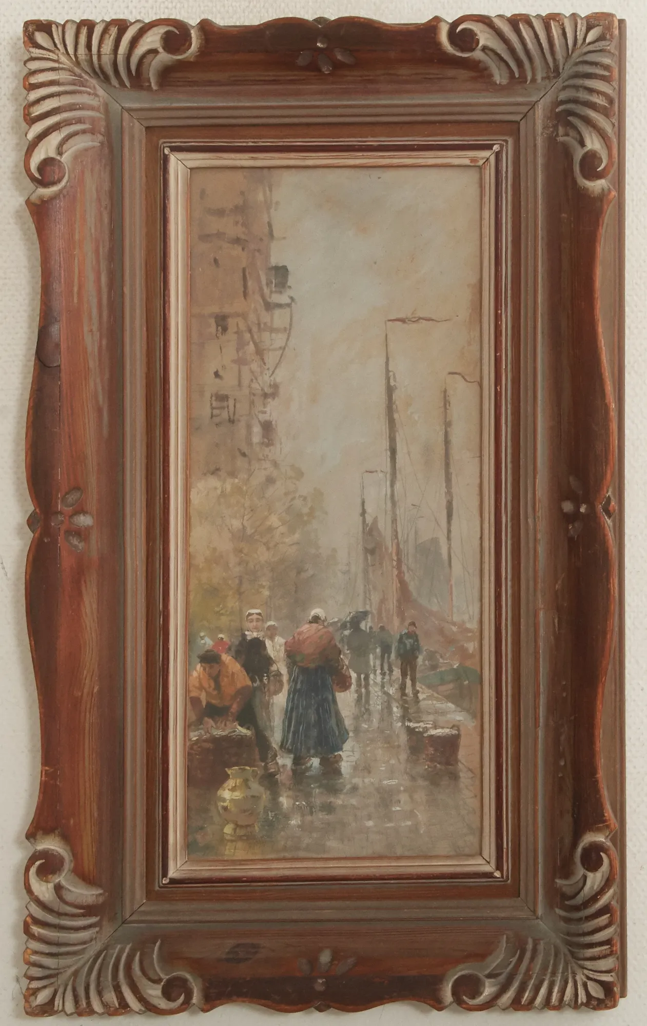 Omkring sekelskifte 18/1900-tal, hamnscen, 55 x 24 cm