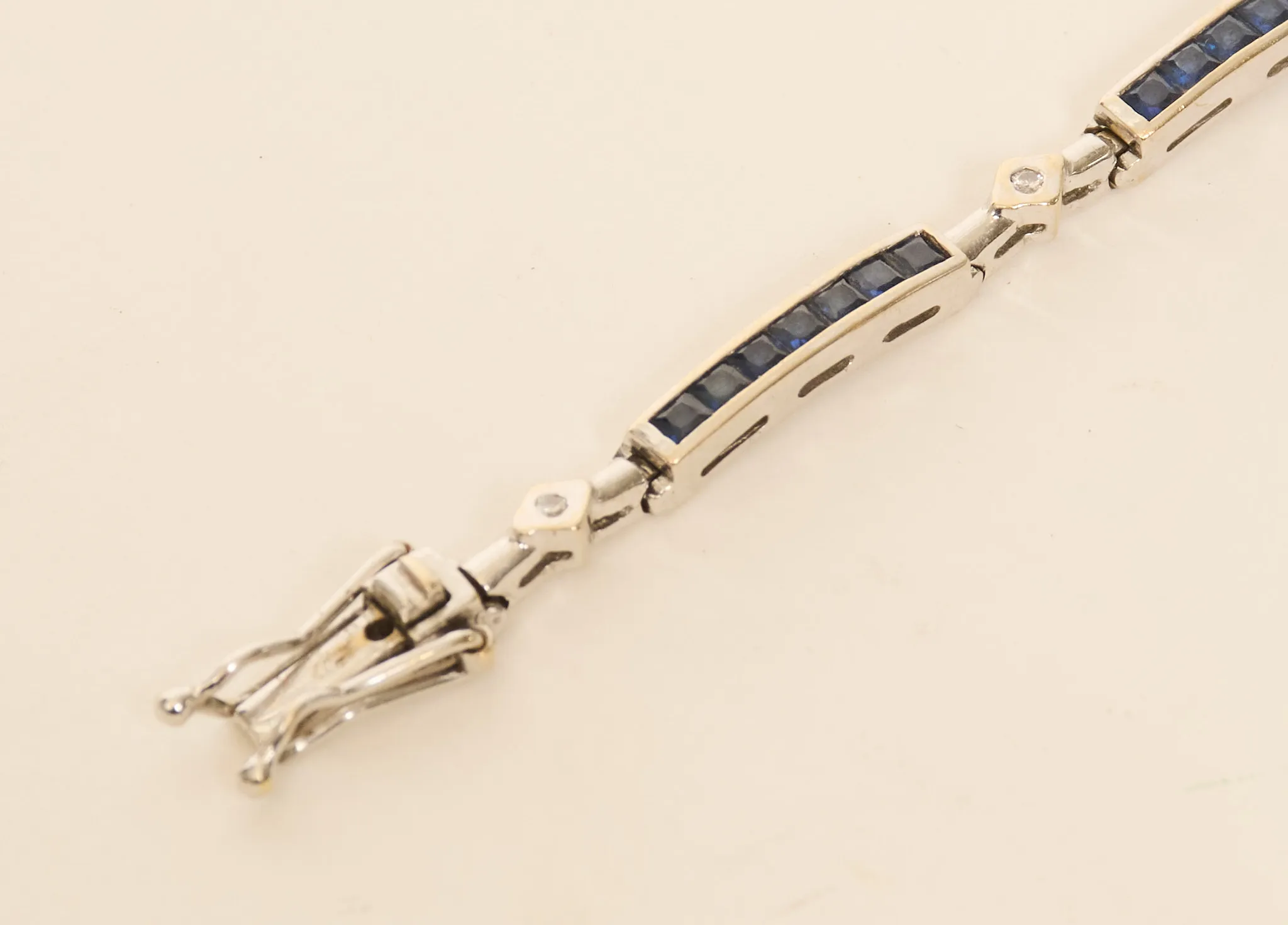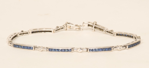 Med safirer och diamanter, längd 19 cm, tot.vikt 9,2 gram, smärre bruksslitage. Detta objekt förvaras inte i auktionssalen, för visning kontakta kundtjänst