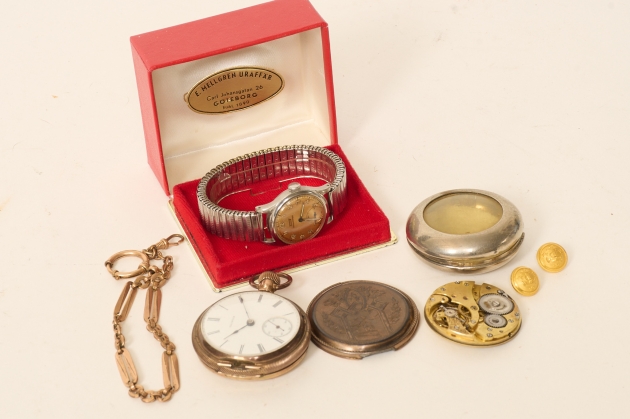 Armbandsur Tissot, mekaniskt, diam 30 mm, fungerar, samt ett fickur, Illinois, samt klockkedja och löst urverk. Bruksslitage.