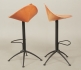 Ett par, svartlackerad metall, sitsar i läder, etikettmärkta, sitthöjd 80 cm, smärre bruksslitage, läder något fläckigt.