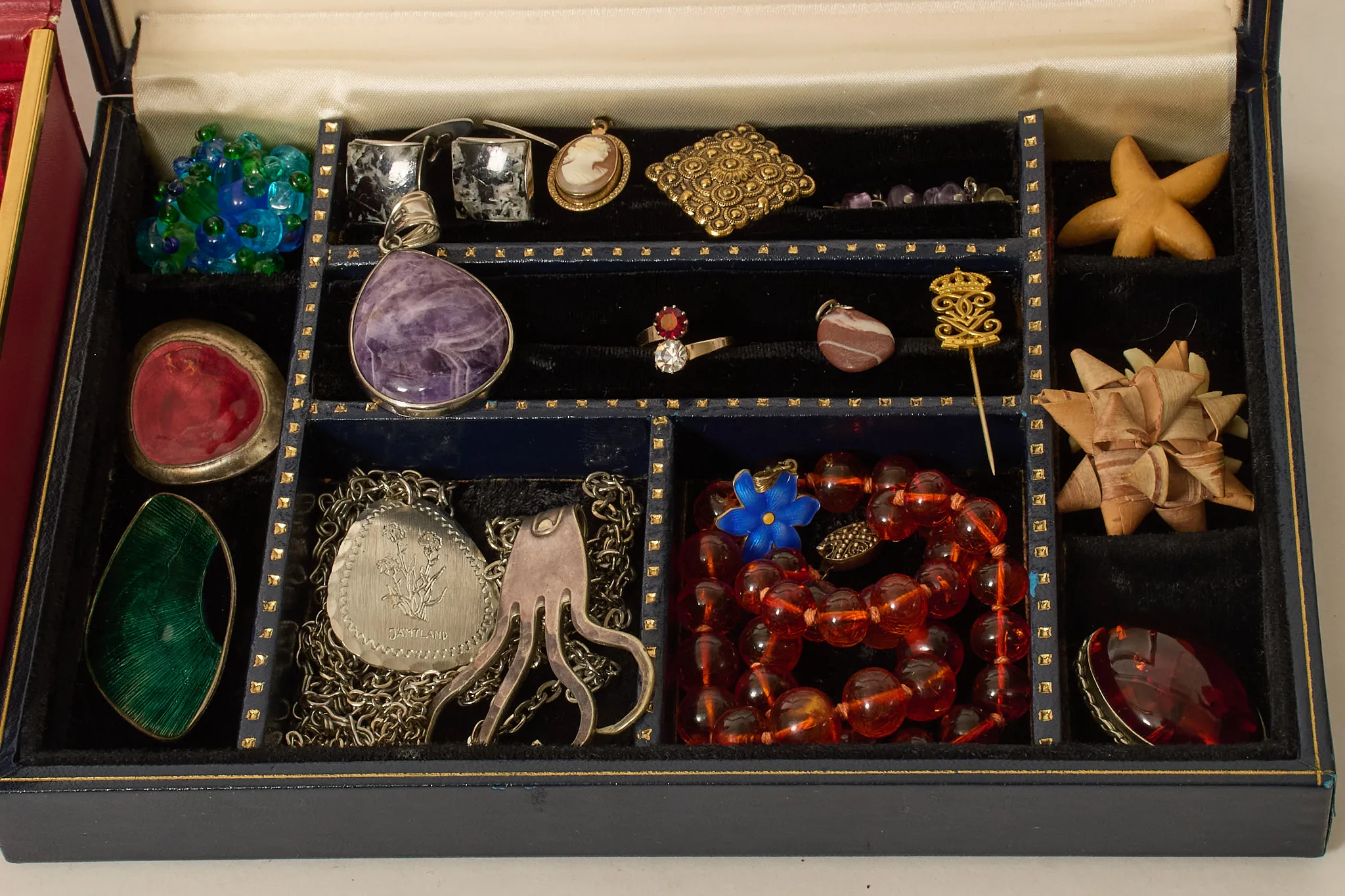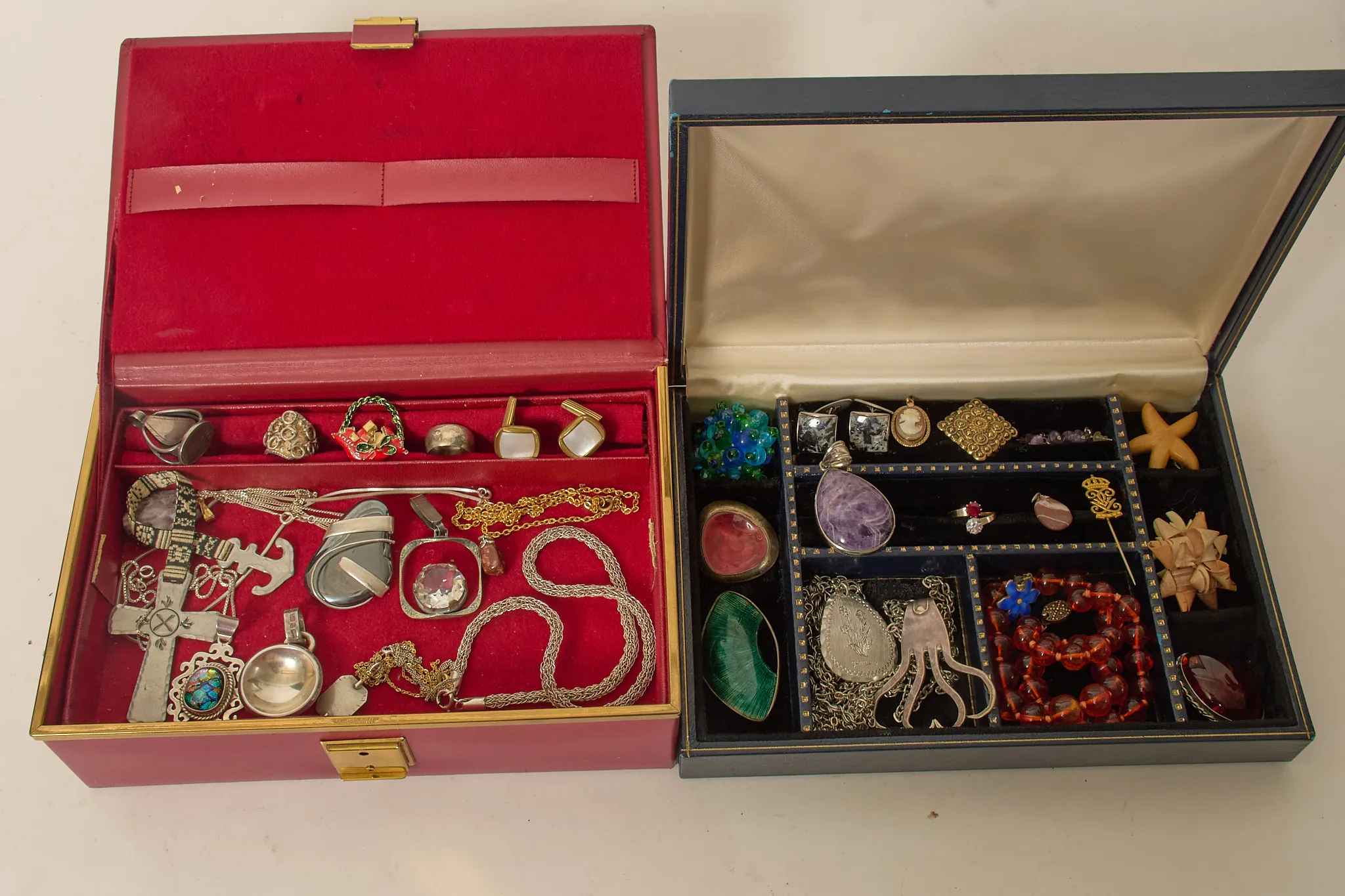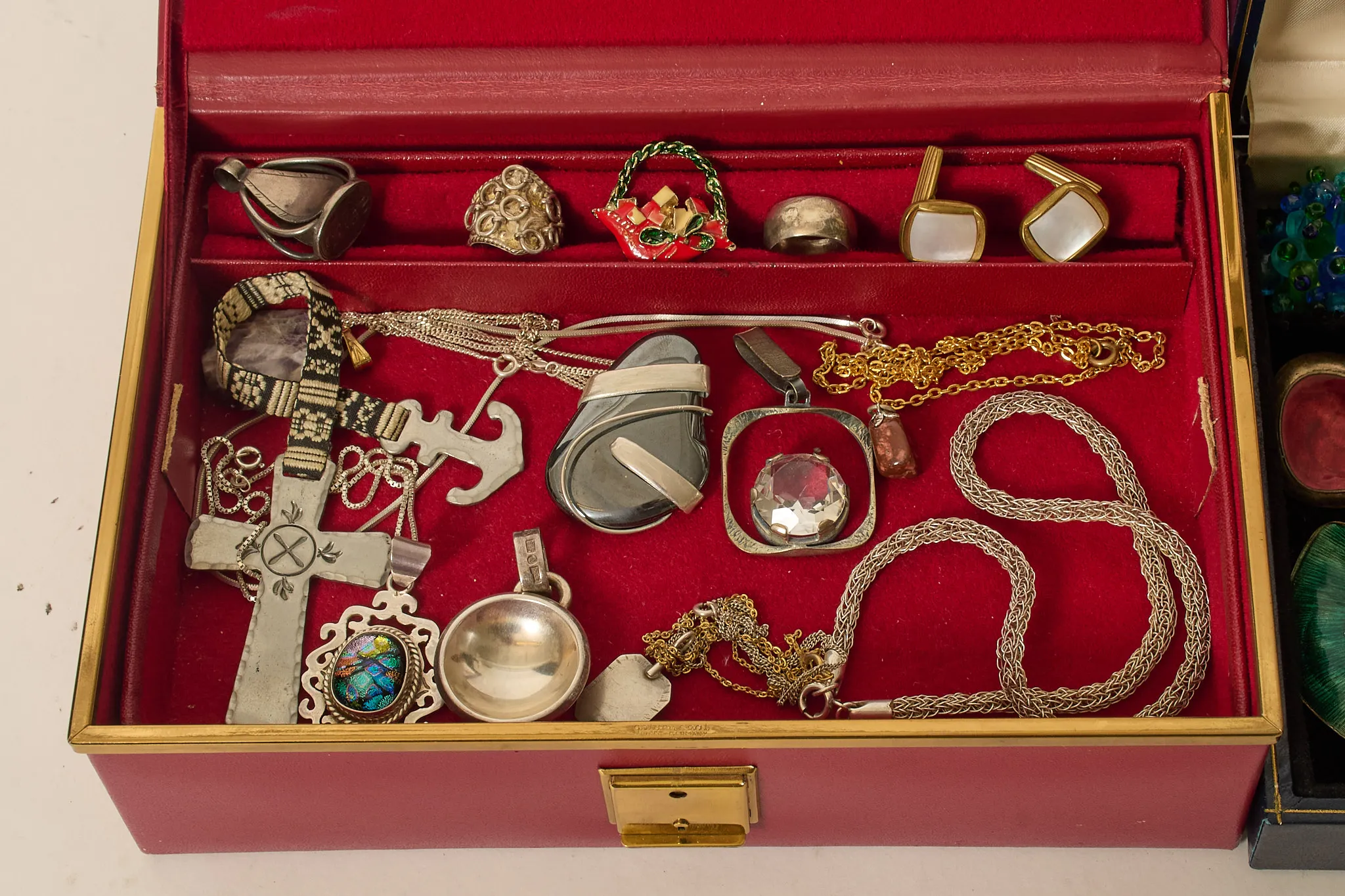 Ringar, halsband, hängen, delvis silver. Ett hänge Anders Högberg, smärre bruksslitage.
