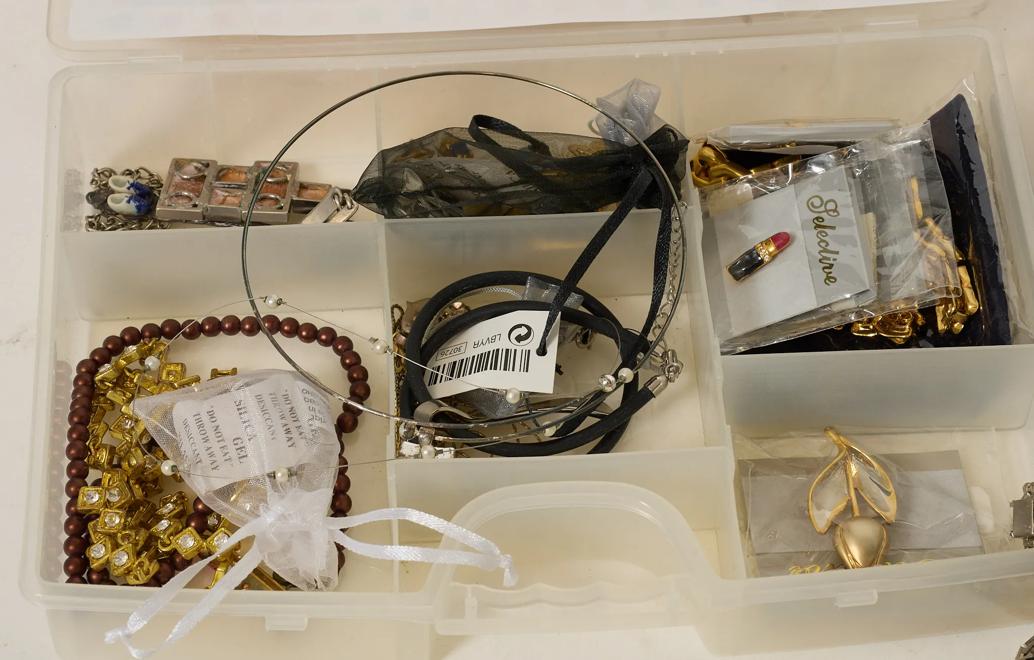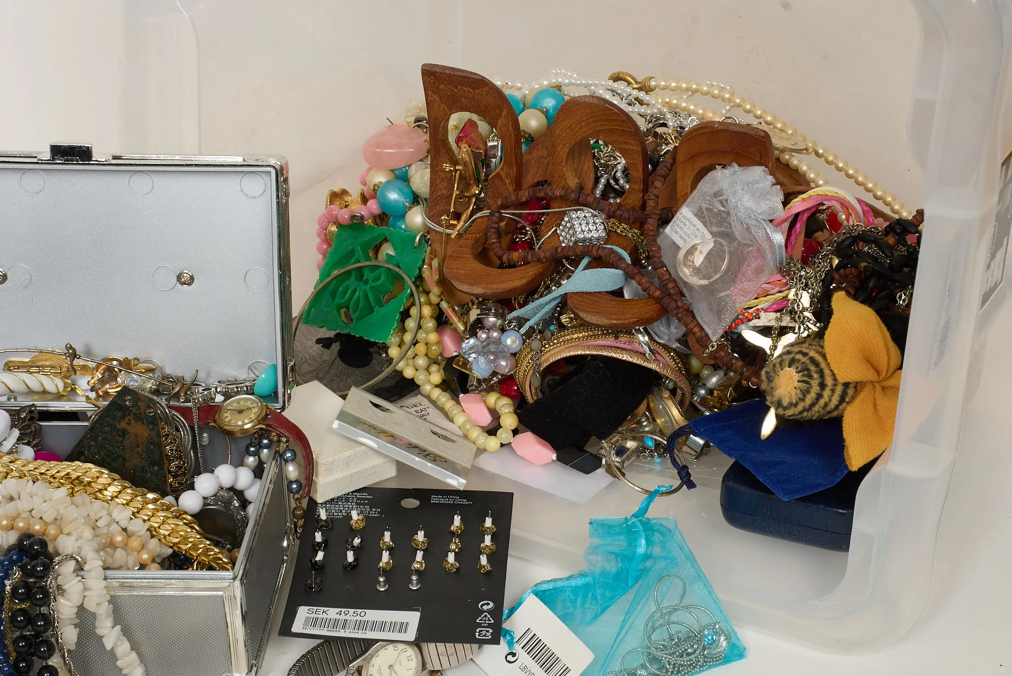 Halsband, armband, klockor mm. Bruksslitage, ej genomgånget.