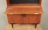 Teak, med svärtad benställning, ett dörrpar med bakomliggande hyllförvaring, samt utdragbar skrivskiva, brickmärkt, 95 x 36 cm, höjd 165 cm, bruksslitage.
