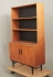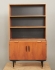Teak, med svärtad benställning, ett dörrpar med bakomliggande hyllförvaring, samt utdragbar skrivskiva, 95 x 36 cm, höjd 165 cm, bruksslitage, skada på benställning se bild.