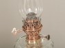 Sexkantig metallfot med oljehus i slipat glas, 20 linjers brännare, fint skick, funktionsduglig, höjd med brännarrör 51 cm