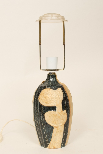 Stengods, höjd till lampfäste 27 cm, ej funktionstestad.