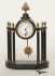 Omkring sekelskifte 18/1900-tal, marmorimiterad trä, samt dekorelement i brons, höjd 30 cm, åldersrelaterad bruksslitage, går vid enklare test, nyckel, samt pendel medföljer