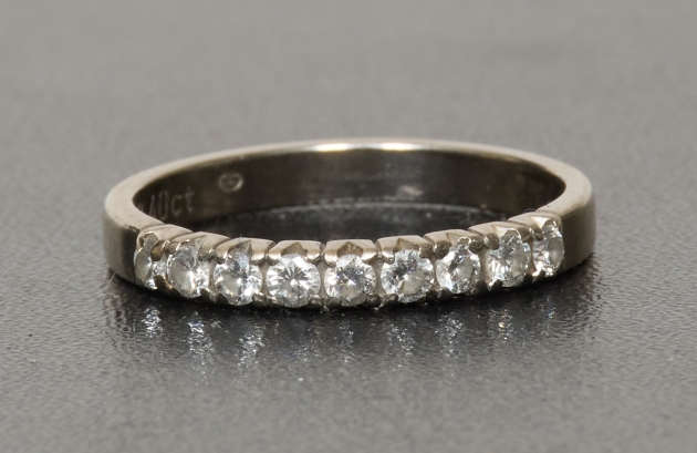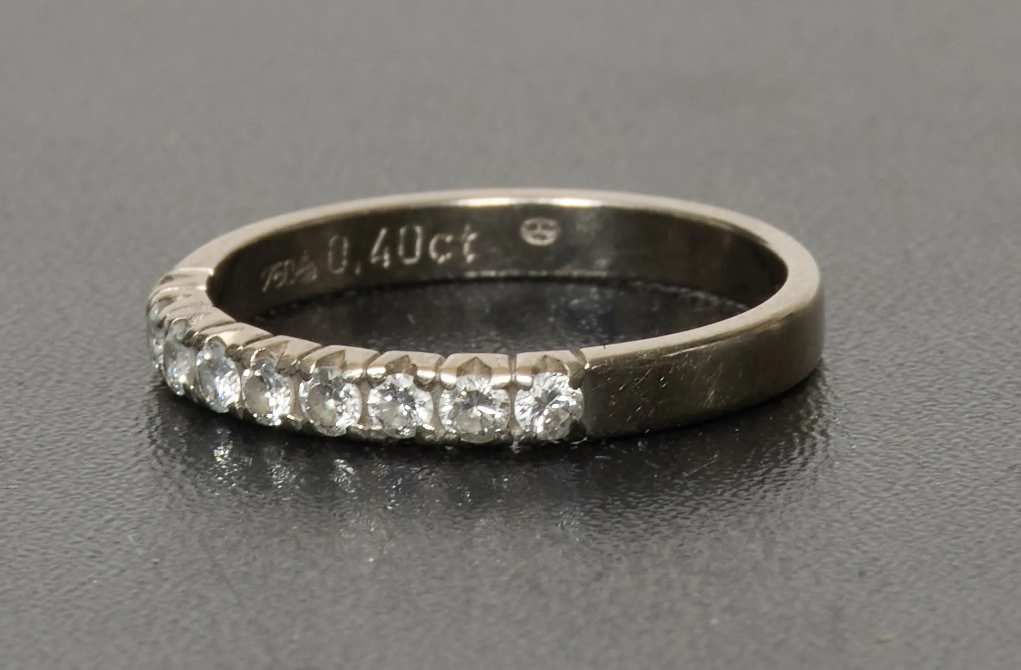 Med 9 st briljanter på tot. 0,4 karat enligt gravyr, strl. 18, tot. vikt 3,1 gram, bruksslitage
