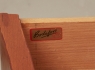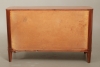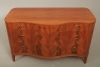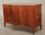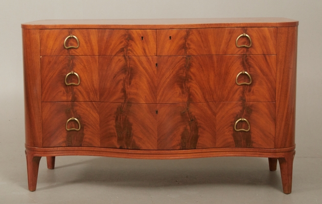 1940/50-tal, mahognyfanerad, välvd front med 3 utdragslådor, mässingsbeslag, 114 x 50 cm, höjd 70 cm. Smärre bruksslitage, men mindre fanérskador förekommer.