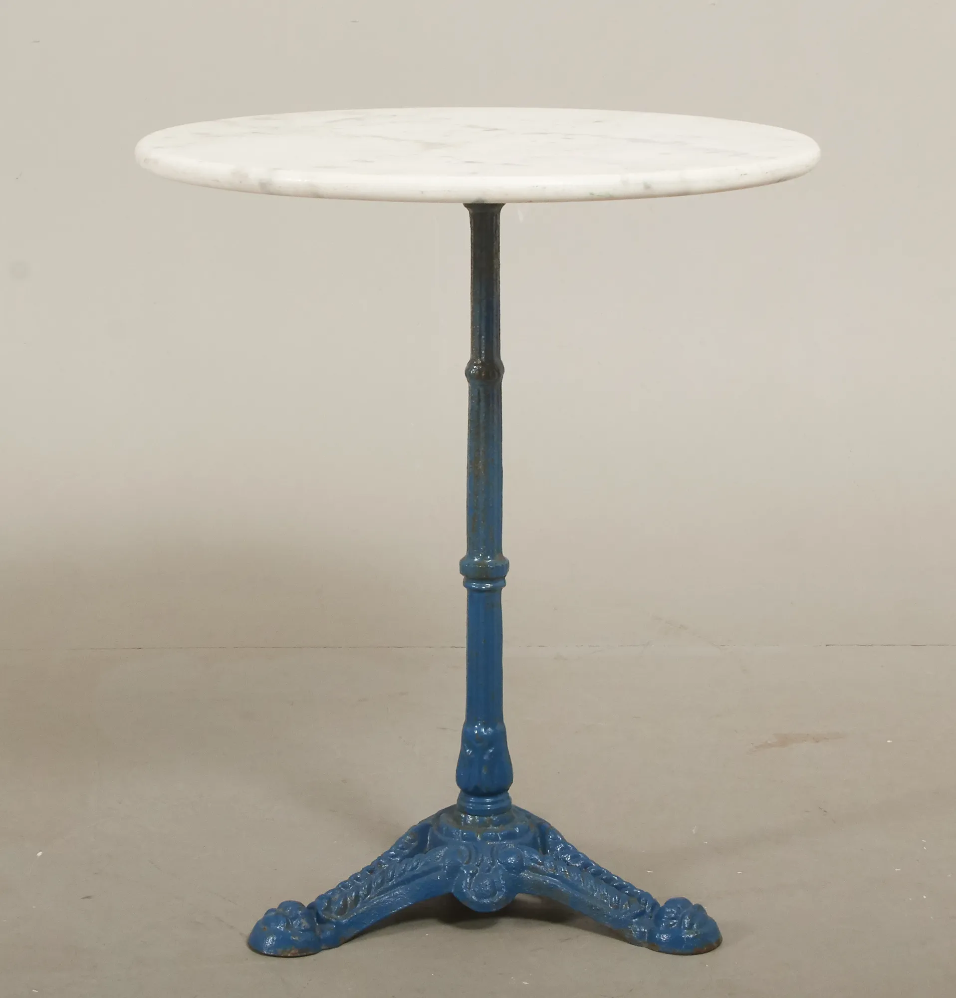 Underrede i bemålat gjutjärn skiva i sten, diam 60 cm, höjd 73 cm, bruksslitage.