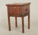 Ek, med järnbeslag, mått skrin 47 x 39, höjd 26 cm, senare underrede medföljer