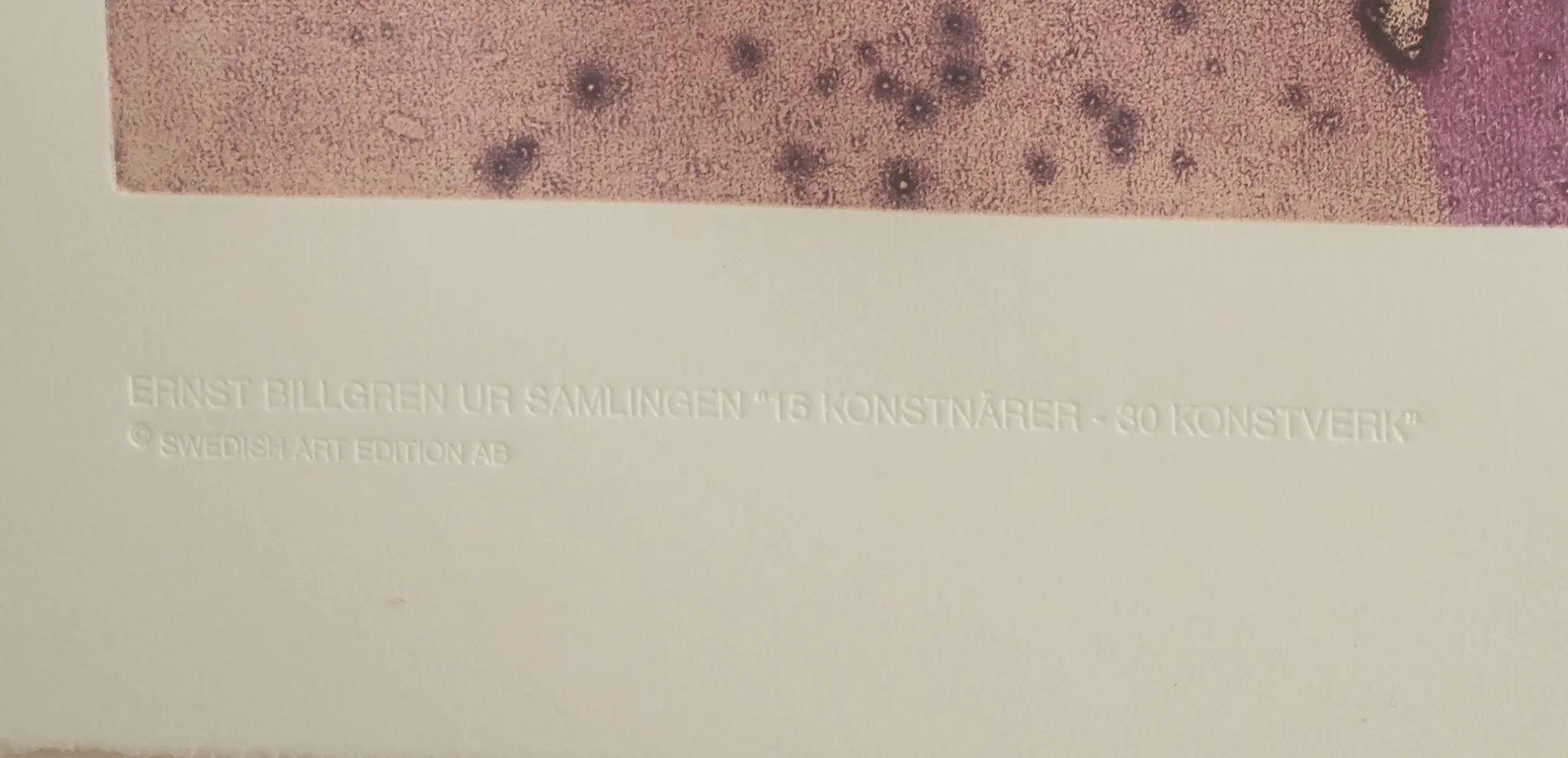 Ur samlingen 15 konstnärer- 30 konstverk", bildmått 39 x 32 cm. Repa i glaset.