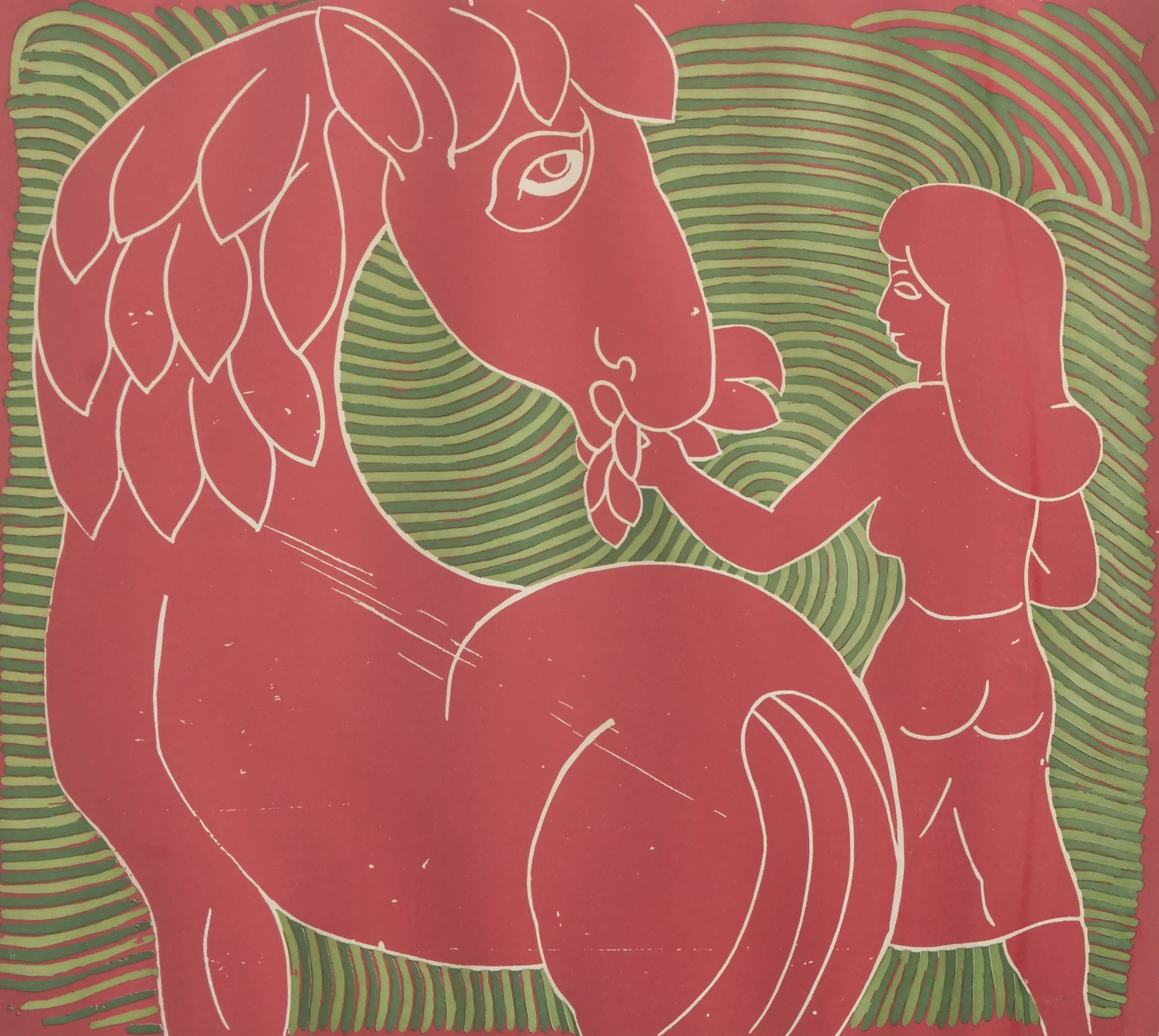 435. Färglitografi, "Kvinde og Hest", Henry Heerup