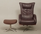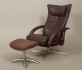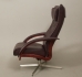 Underrede i kromad metall, klädsel i skinn, justerbar sits, rygg och nacke, snurrbar, smärre bruksslitage, avvikande fotpall medföljer.