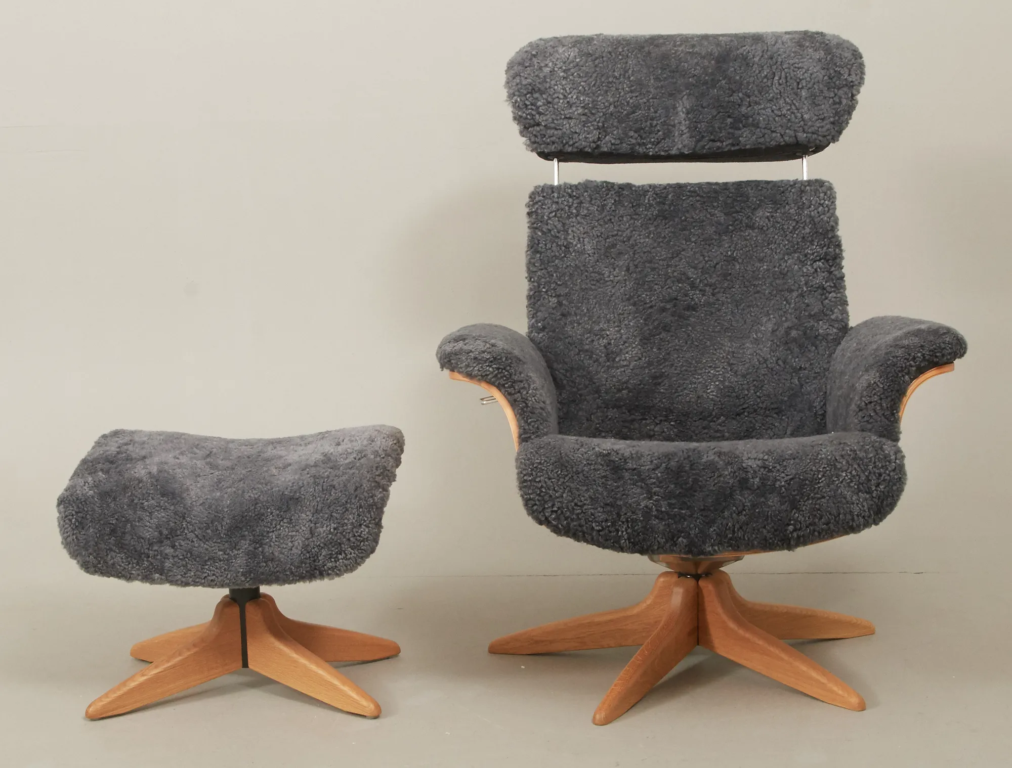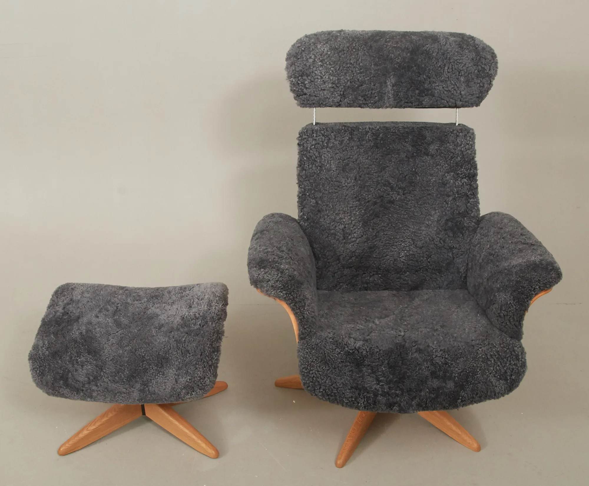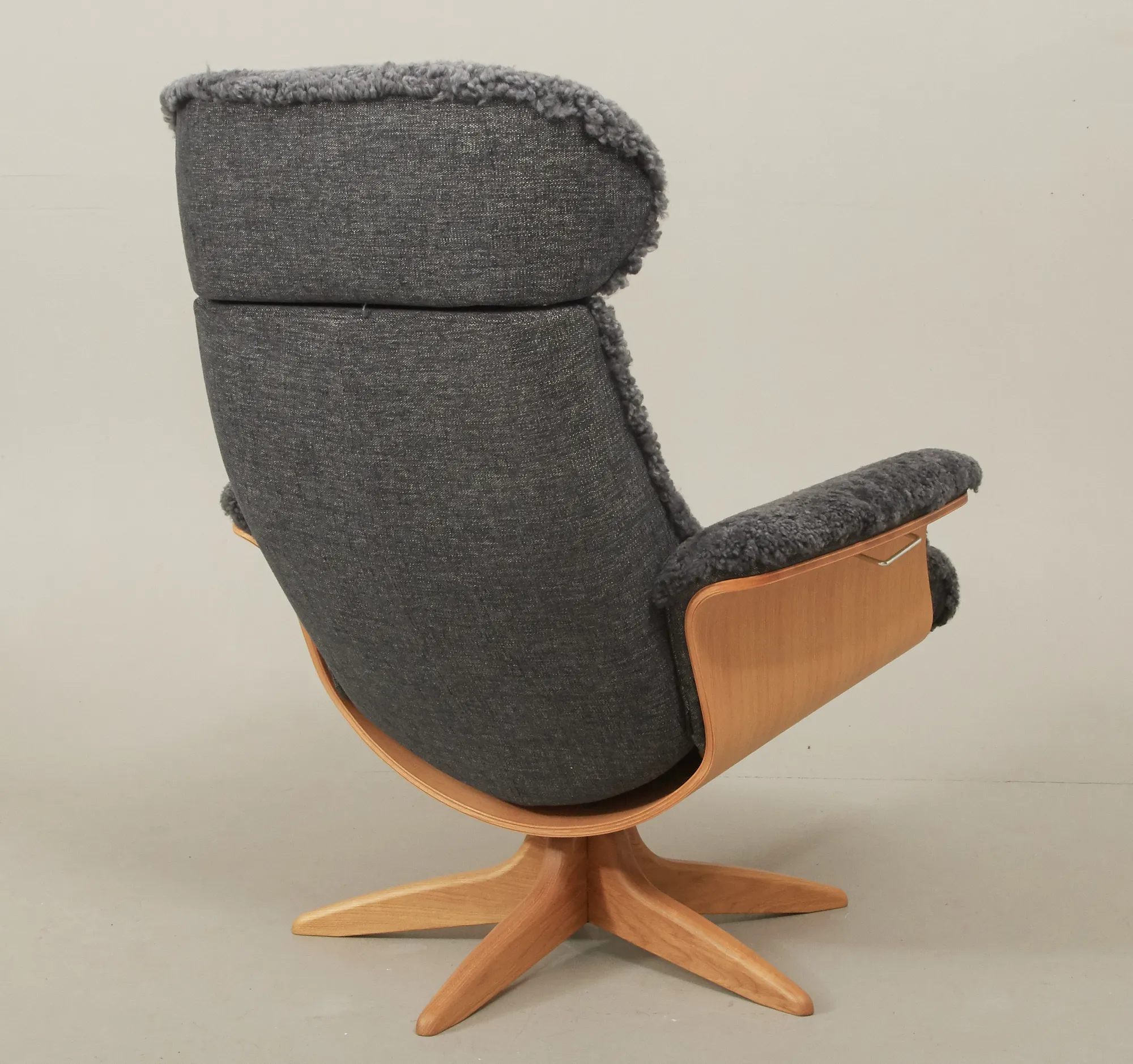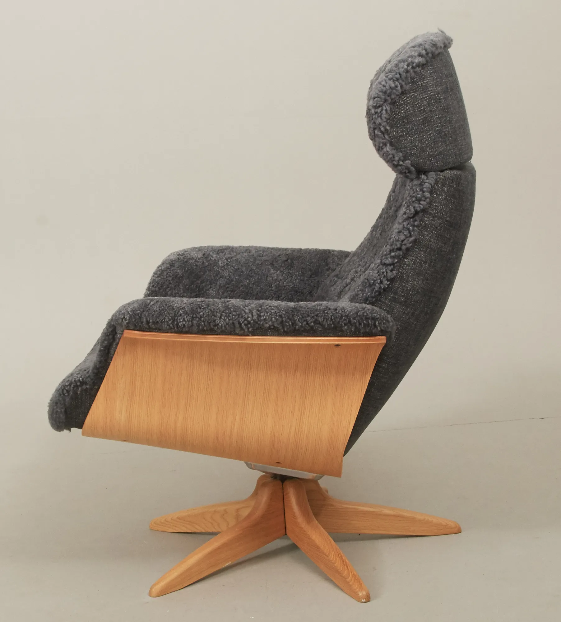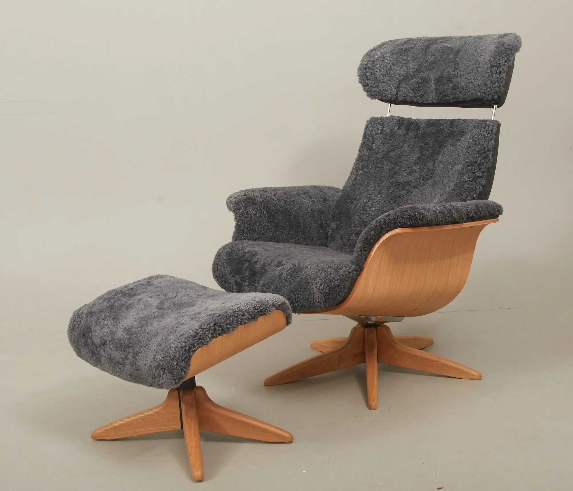Jahn Aamodt, formpressat lövträ, samt fårskinn, med reclainer, smärre bruksslitage.