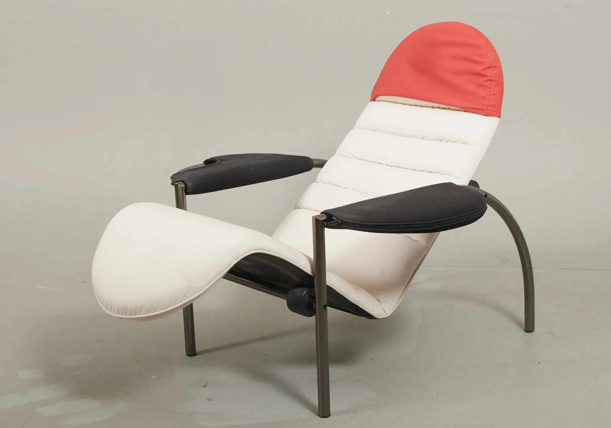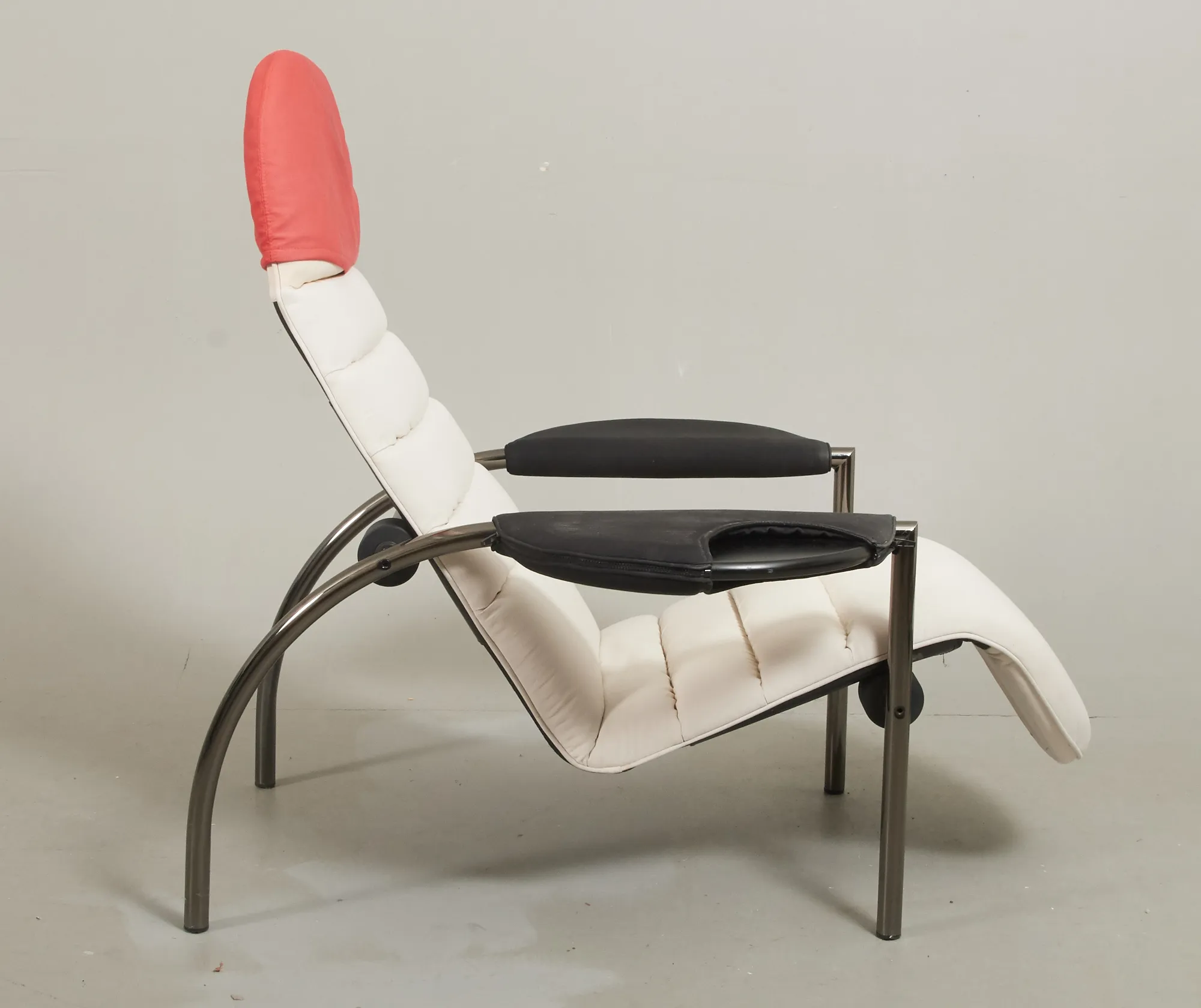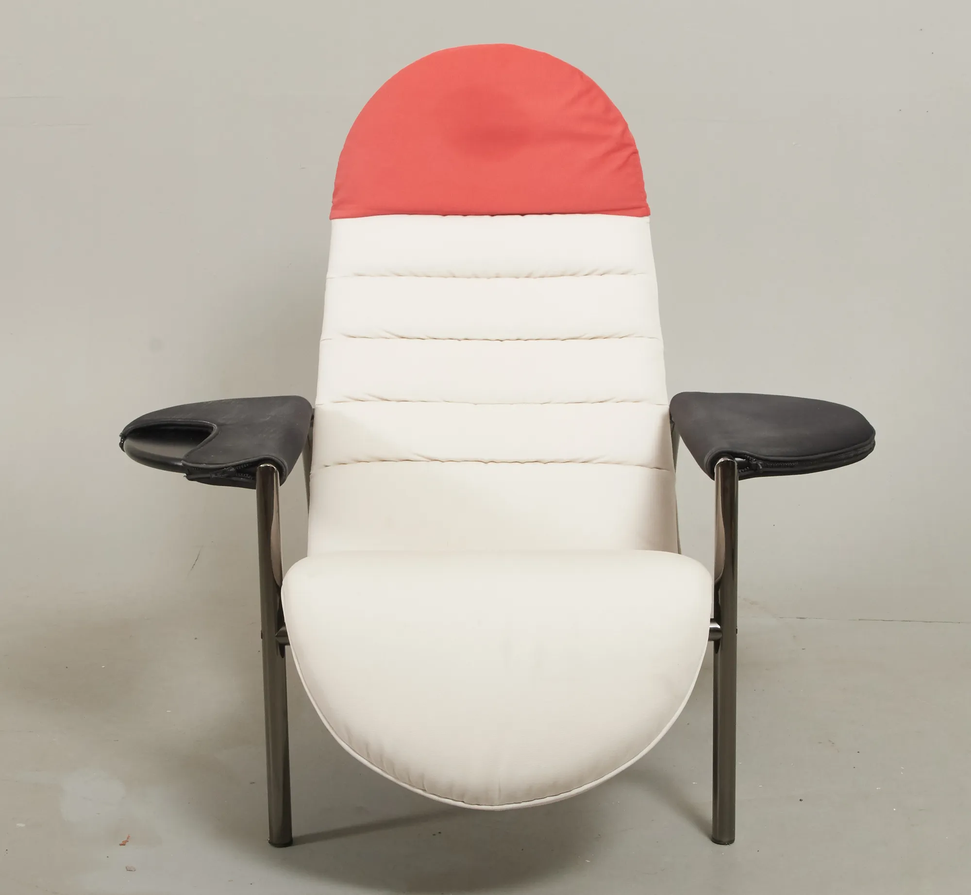 Stomme i kromad metall, klädsel i skinn, samt textil, smärre bruksslitage