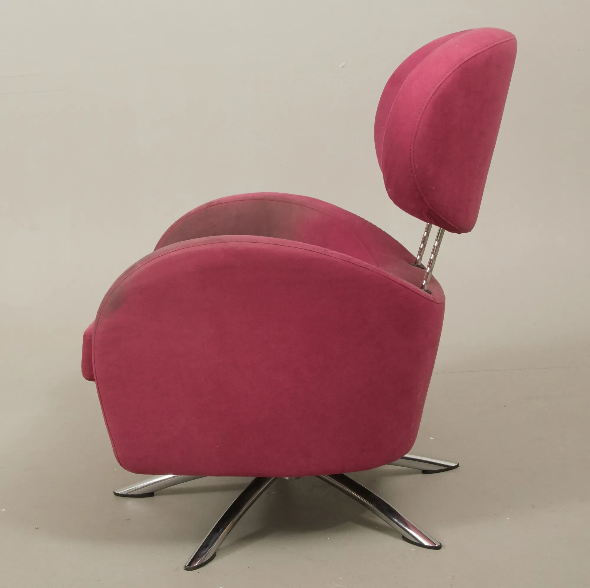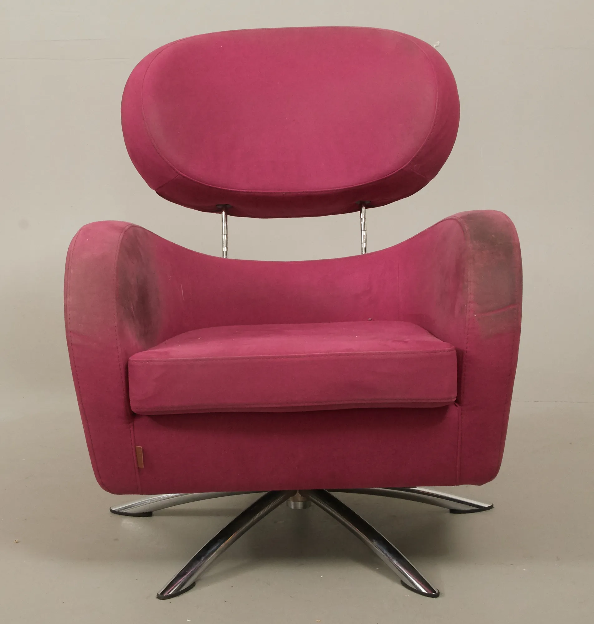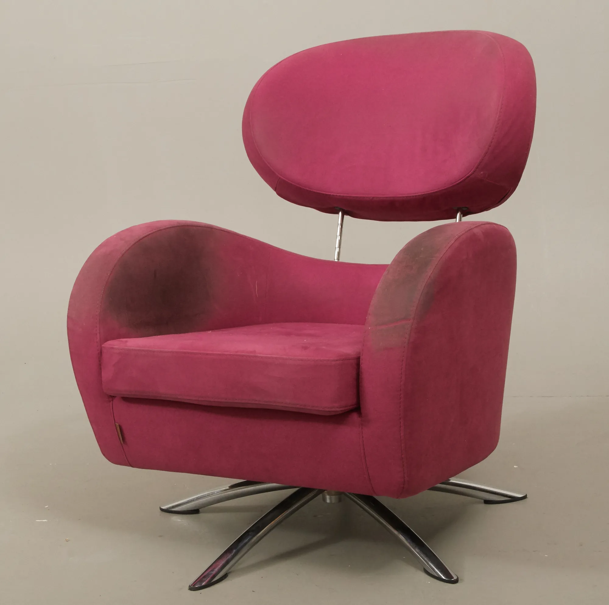 Stomme i kromat stål, klädsel i textil, snurrbar, med ställbart nackstöd, etikettmärkt. Klädsel smutsig och fläckig.