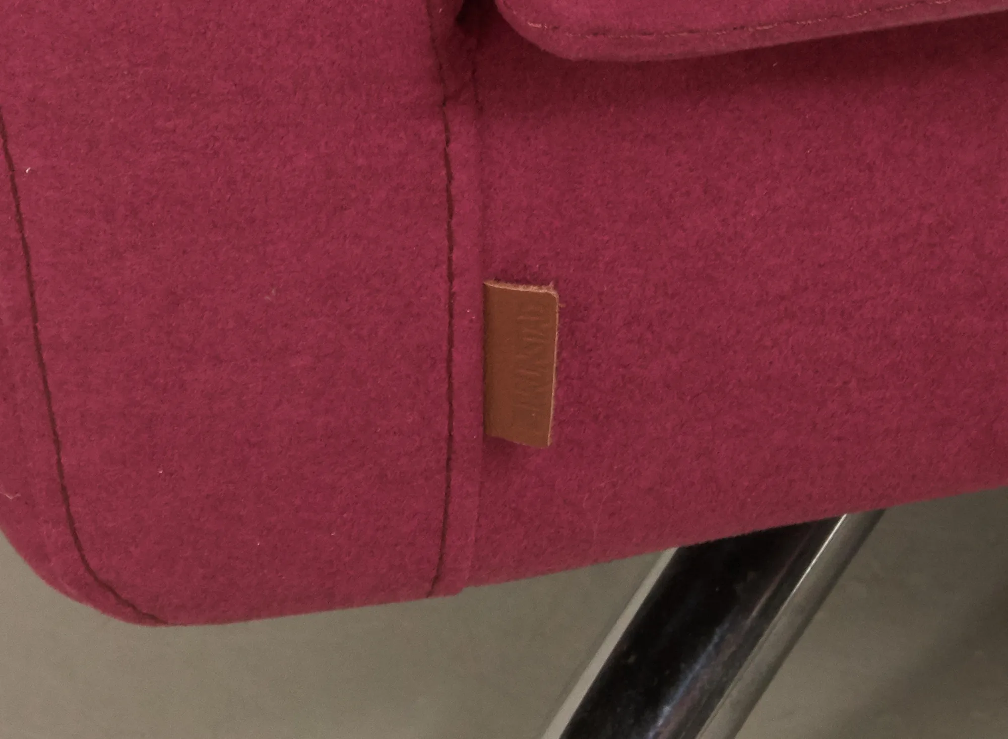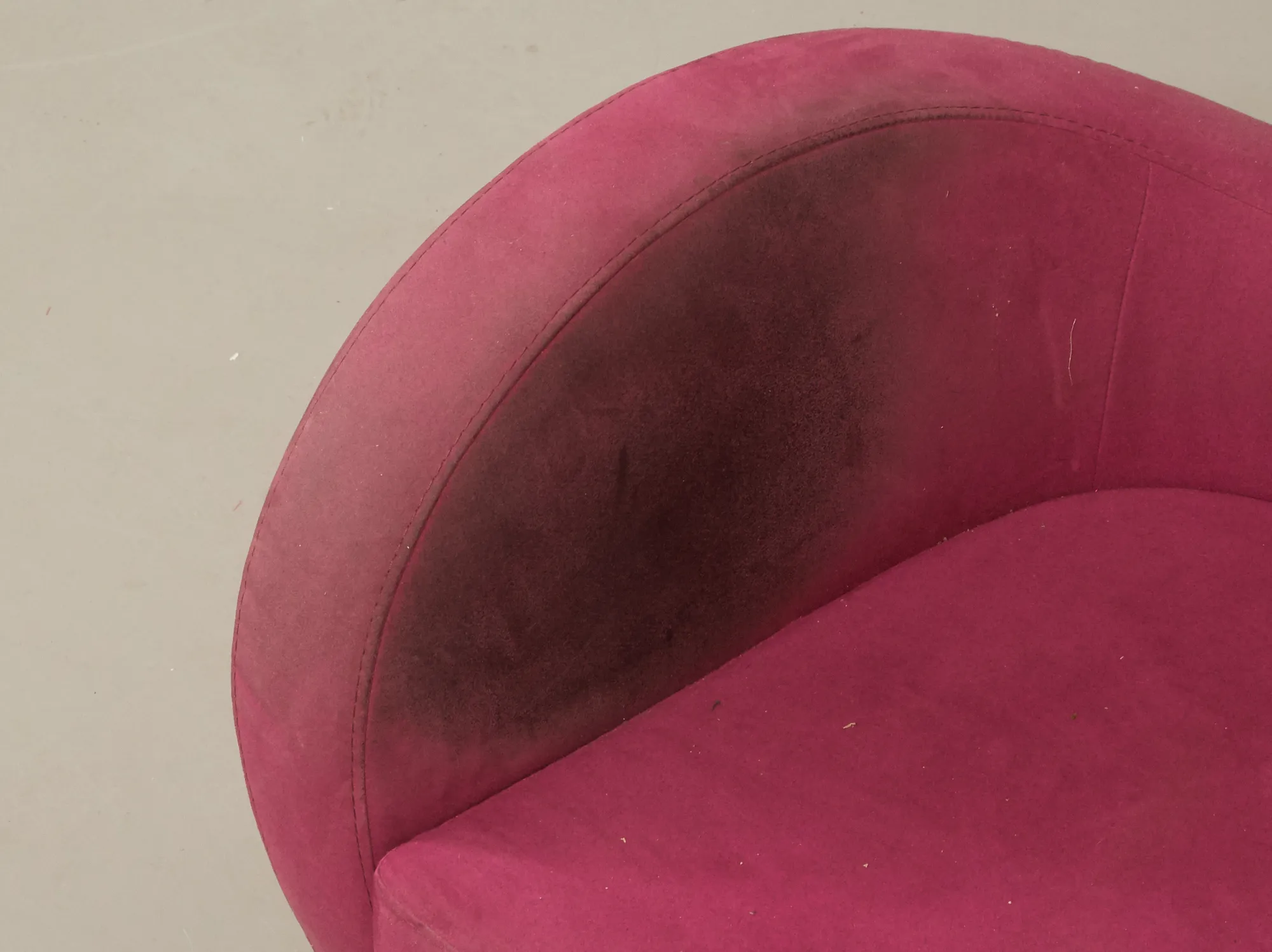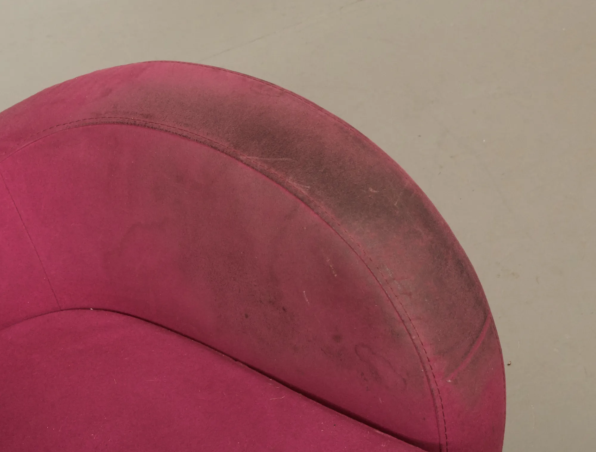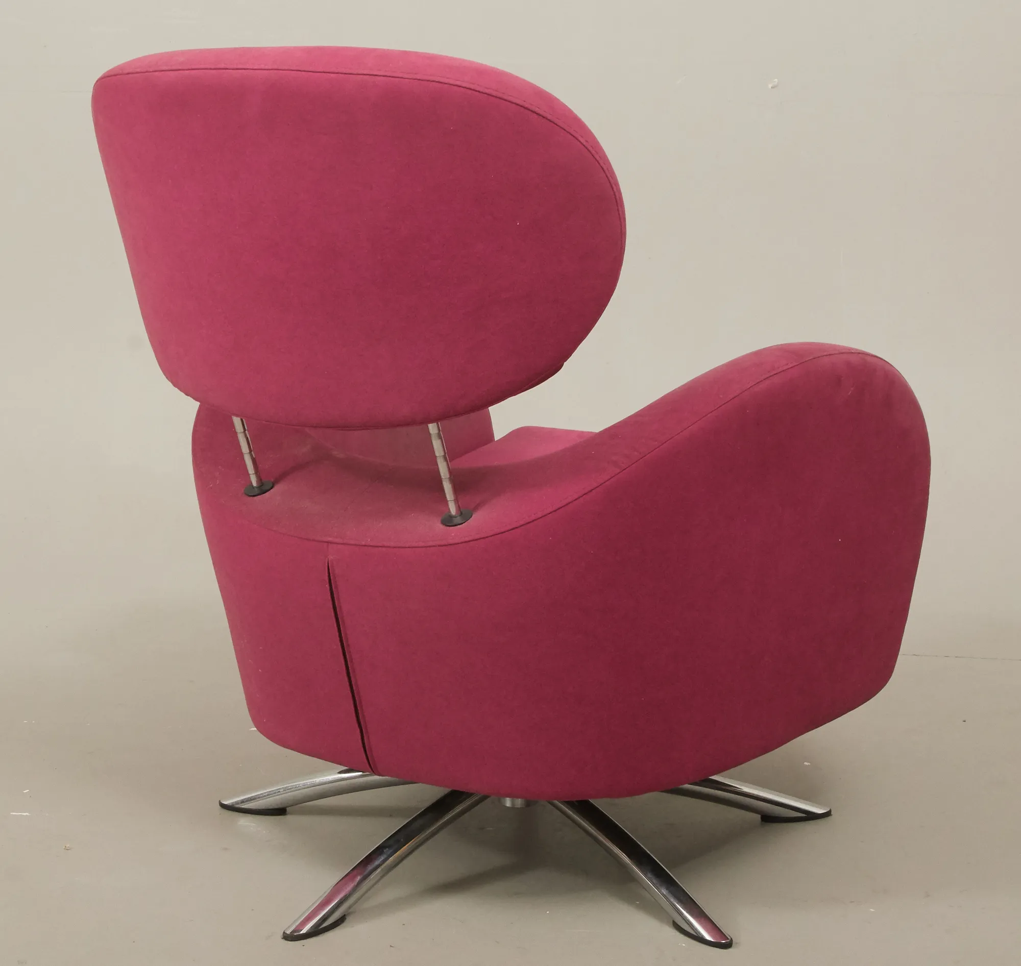 Stomme i kromat stål, klädsel i textil, snurrbar, med ställbart nackstöd, etikettmärkt. Klädsel smutsig och fläckig.