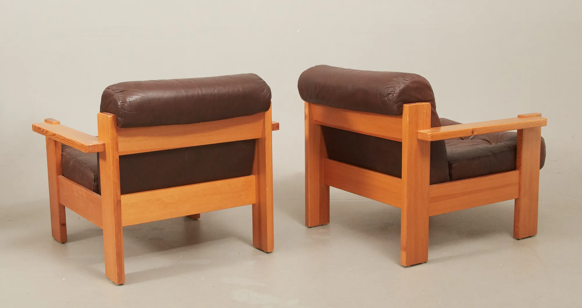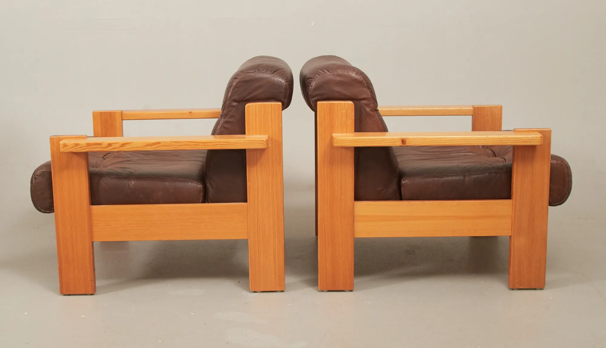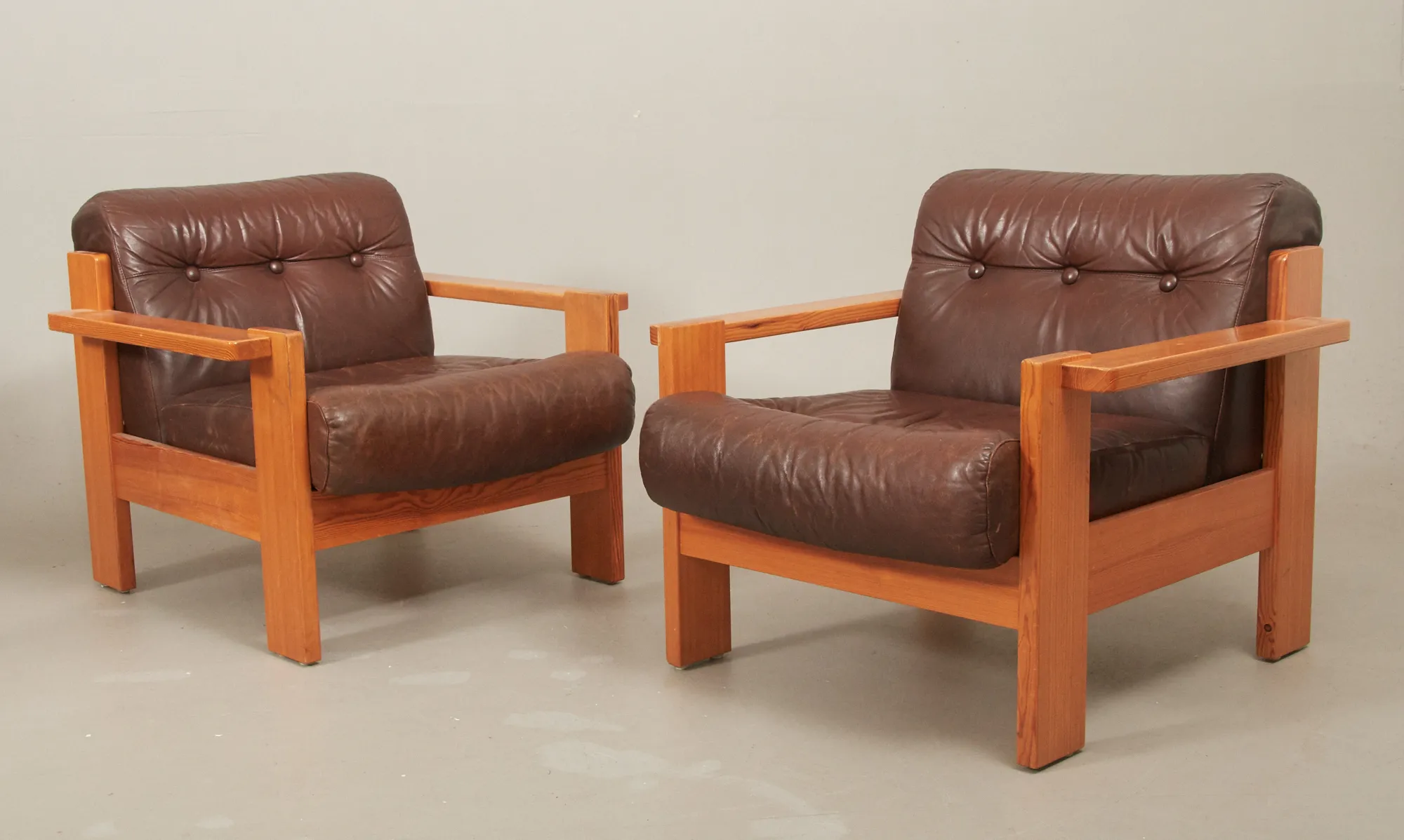 1960/70-tal, ett par furu med skinnklädsel, smärre bruksslitage.
