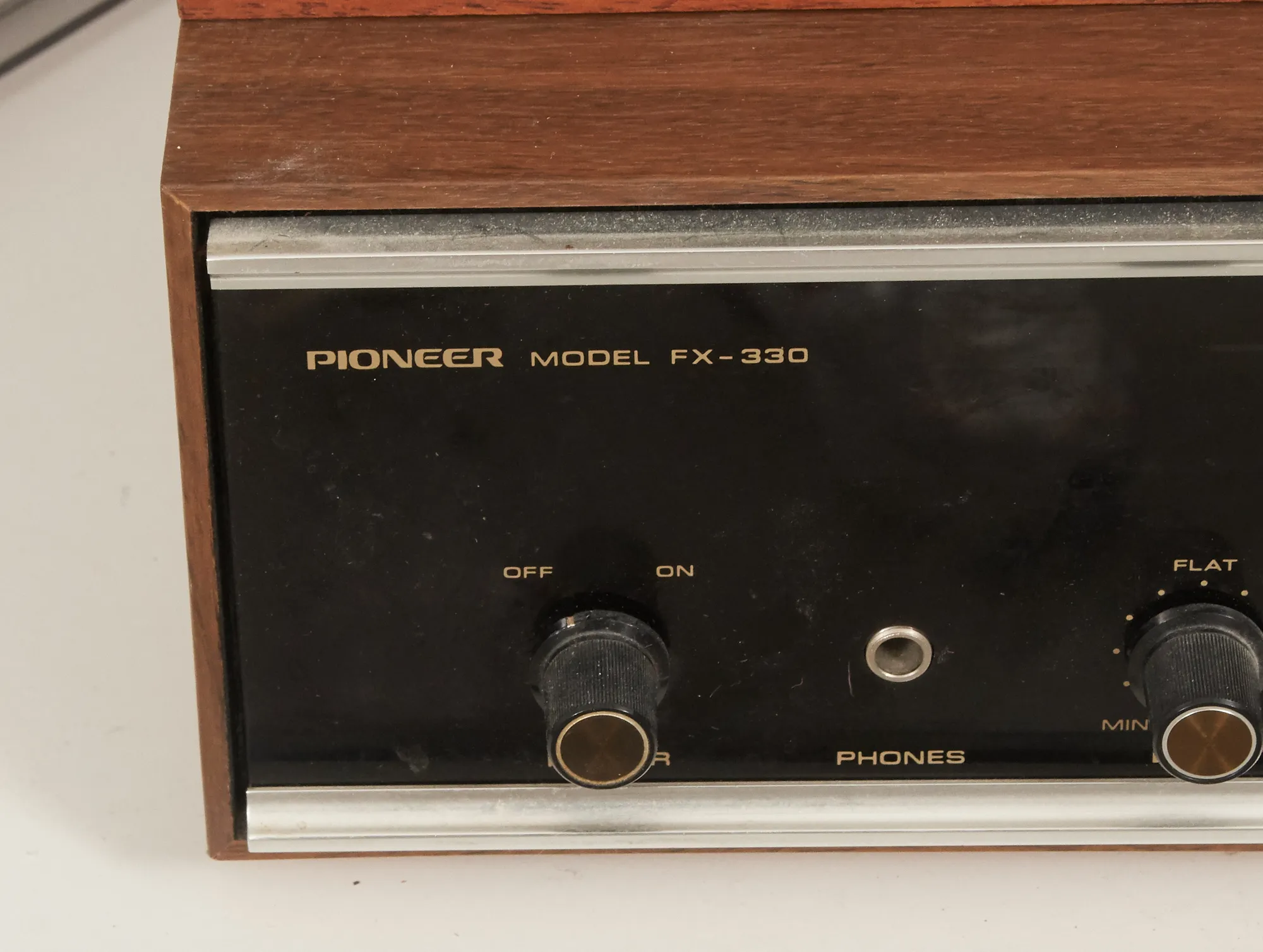 Förstärkare Pioneer, modell FX - 330, samt skivspelare, defekt stängning på lock, samt saknar pick up-nål. Bruksslitage, ej funktionstestat.