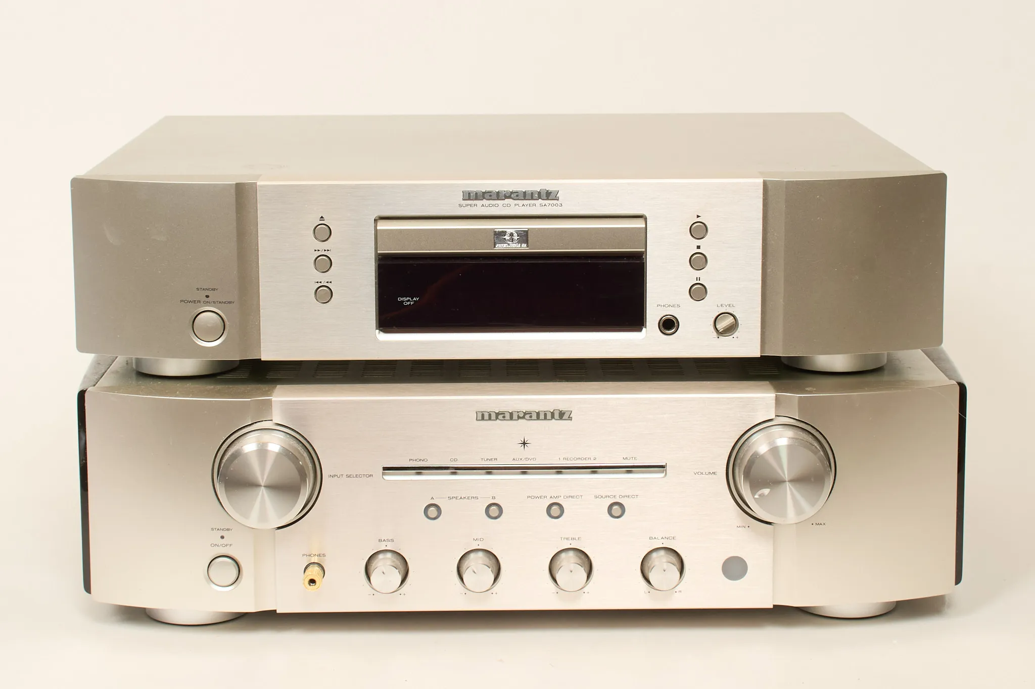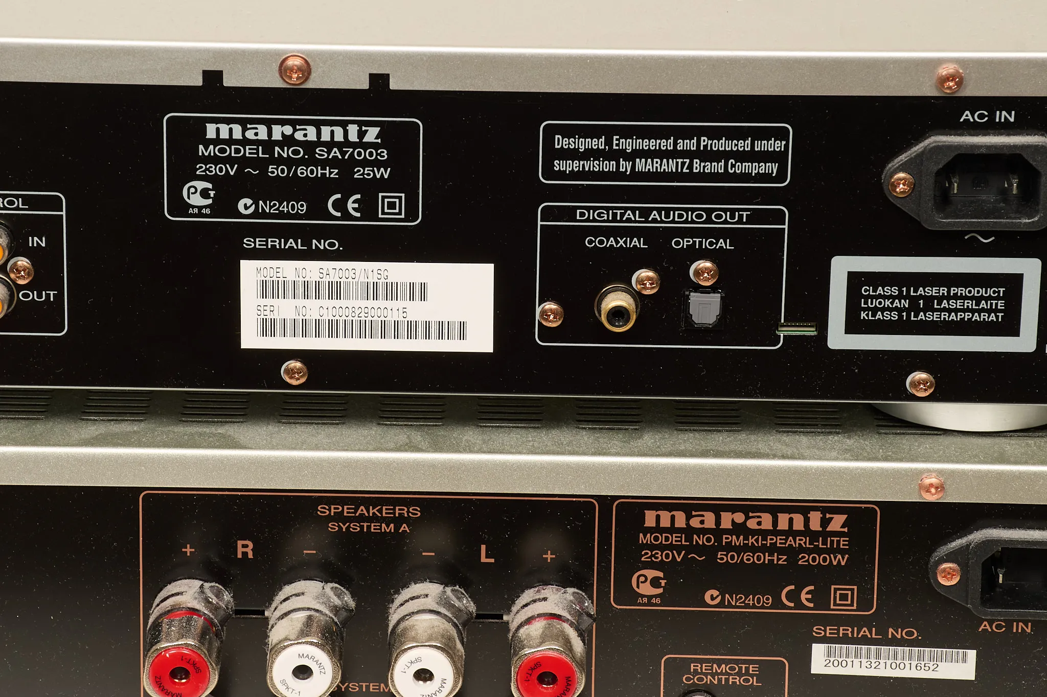 Förstärkare K.I Pearl Lite, samt CD-spelare SA7003, smärre yttre bruksslitage, ej funktionstestade.