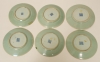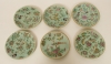 6 st, Celadonglasyr, dekor i famillerose med växter samt fåglar, diam. 19 cm, 2 st med nagg, samt mindre lagningar