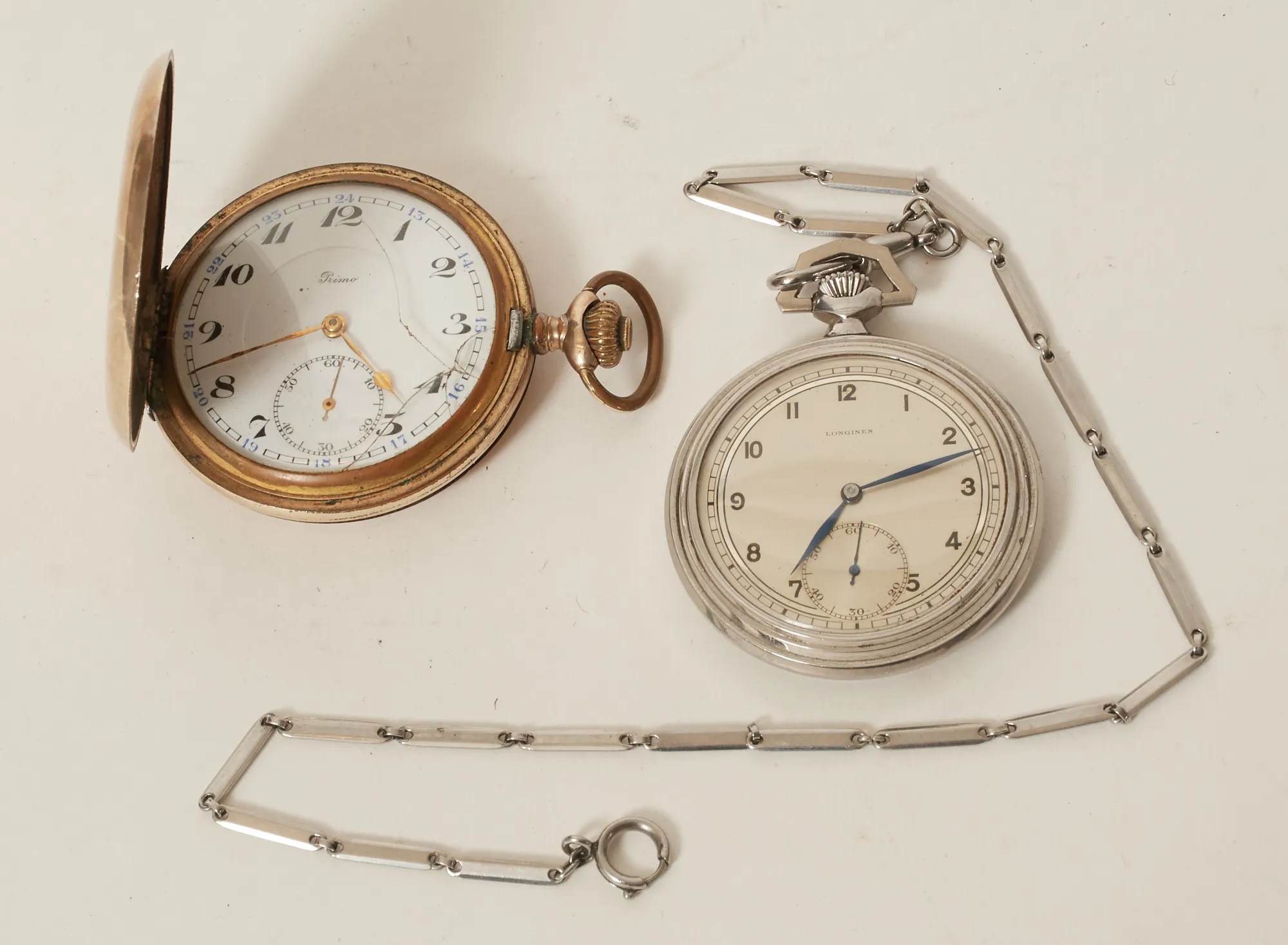 1 st savonett, Rimo, diam. 52 mm, defekt, samt en st frackur, Longines i stål, diam. 48 mm, smärre slitage, går vid enklare test