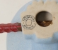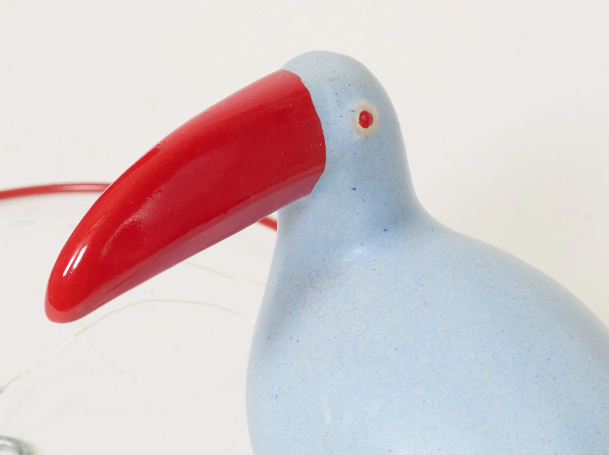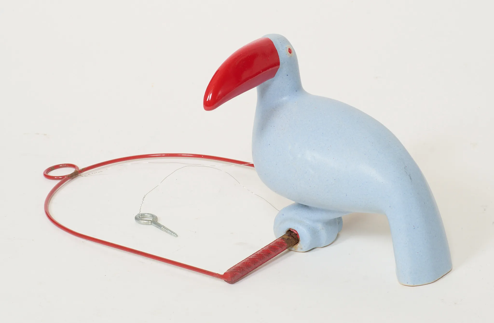 I form av tukan, höjd fågel 15 cm, löst (behöver limmas för att sitta fast) monterad på sittpinne för upphängning. Smärre bruksslitage.