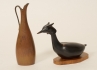 Glaserat stengods, figurin, "Skäggdopping", längd 25 cm, lös sockel i trä medföljer, hänkelvas, höjd 25 cm, smärre bruksslitage.
