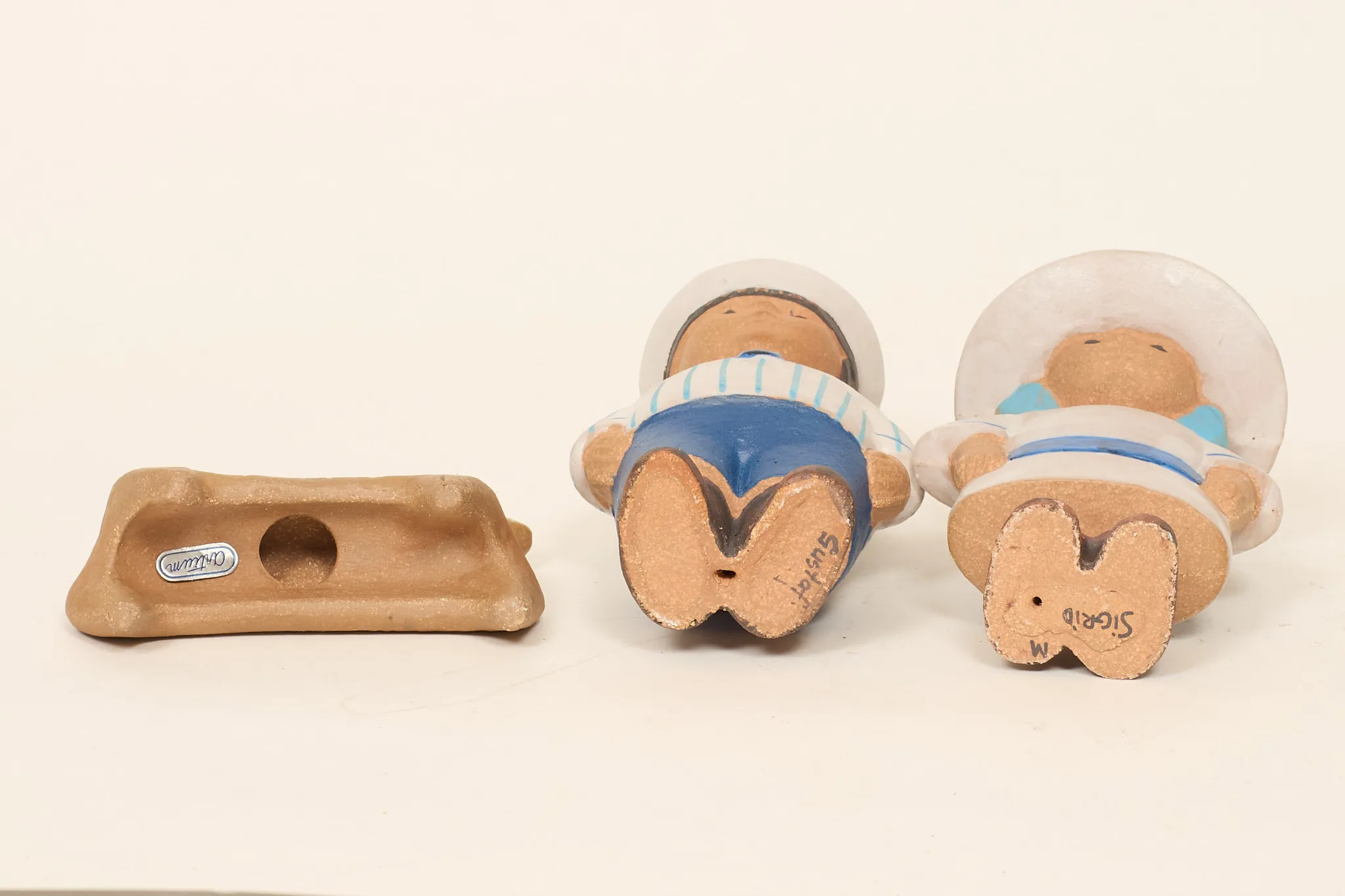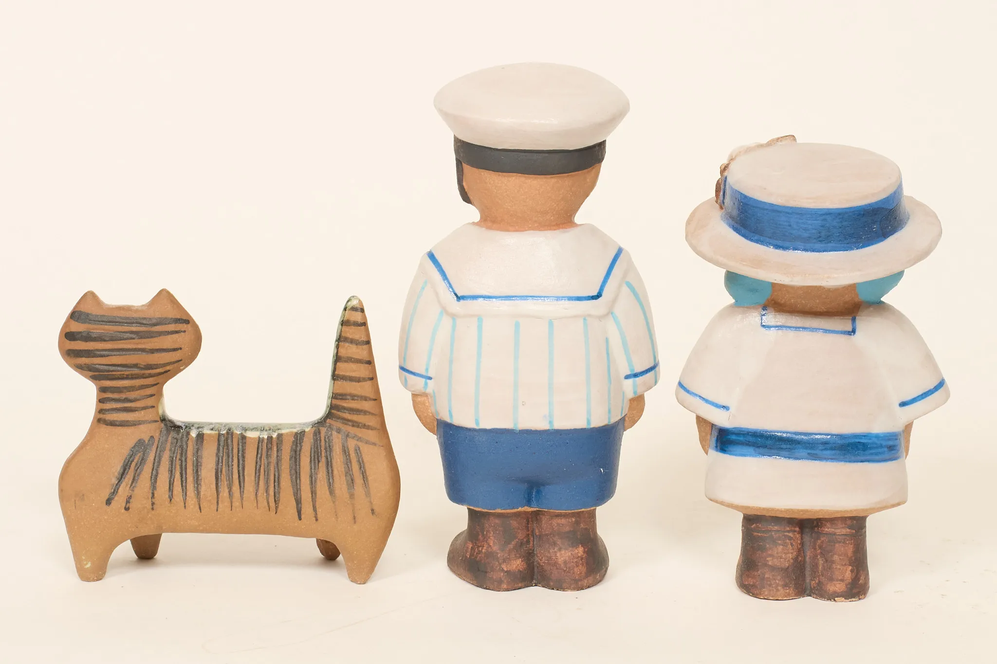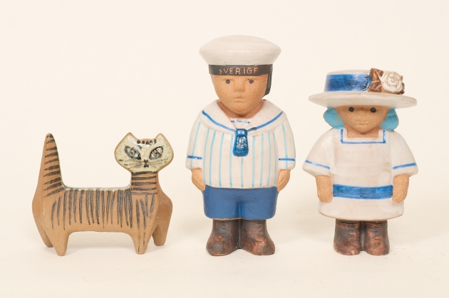3 st, "Sigrid" och "Gustaf", ur serien Sekelskifte, samt katt, höjd 10 - 17 cm, smärre bruksslitage.