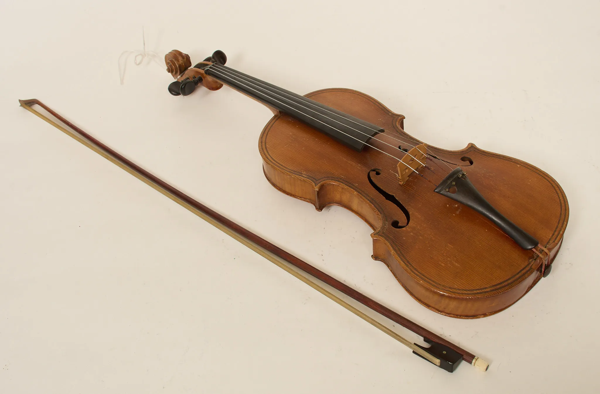 Bruksslitage/slitage, stråke med skada, längd fiol 61 cm.