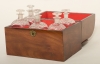 1800-tal, mahogny, plats för 6 flaskor, en saknas, mått flaska 6,5 x 6,5, höjd 17 cm, schatill 26 x 18, höjd 22 cm, bruksslitage