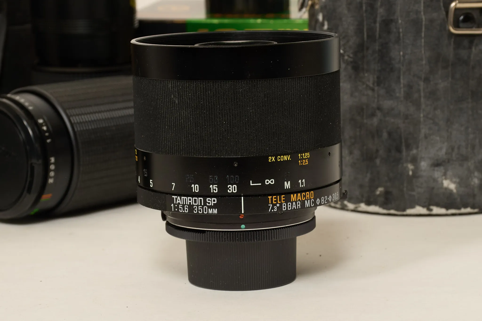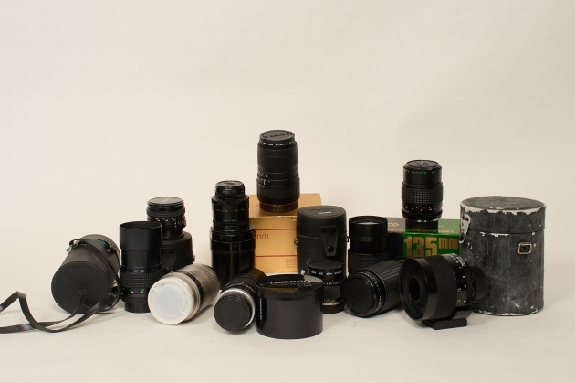 Tamron sp 350 mm, Konica AR 28 mm, Konica AR 135 mm, Olympus Zuiko auto-s 50 mm. 2 st Sigma 100-300 mm, Minolta MD Tele 135 mm, Makinon MC Zoom 80- 200 mm, Makinon Mc zoom auto 135 mm, Prinz Galaxy 200 mm, Helios 44-2, 2/58. Bruksslitage, ej funktionstestade.