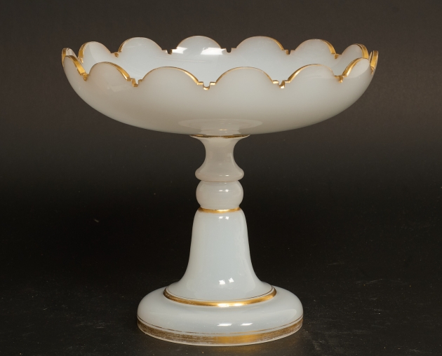 Opalinglas, med förgylld dekor, höjd 23 cm, smärre bruksslitage, men visst dekorslitage.