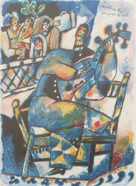 "Concerto en bleu pour peuple en exile". Bladmått 73 x 54 cm. Signerad samt numrerad 71/180