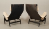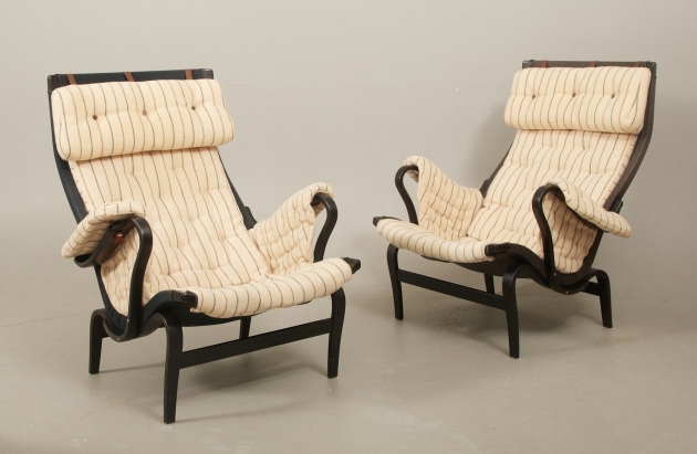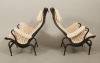 Ett par, mörkbetsat trä, textilklädsel (möjligen senare), bruksslitage, lagat fäste till klädsel till ett armlän.
